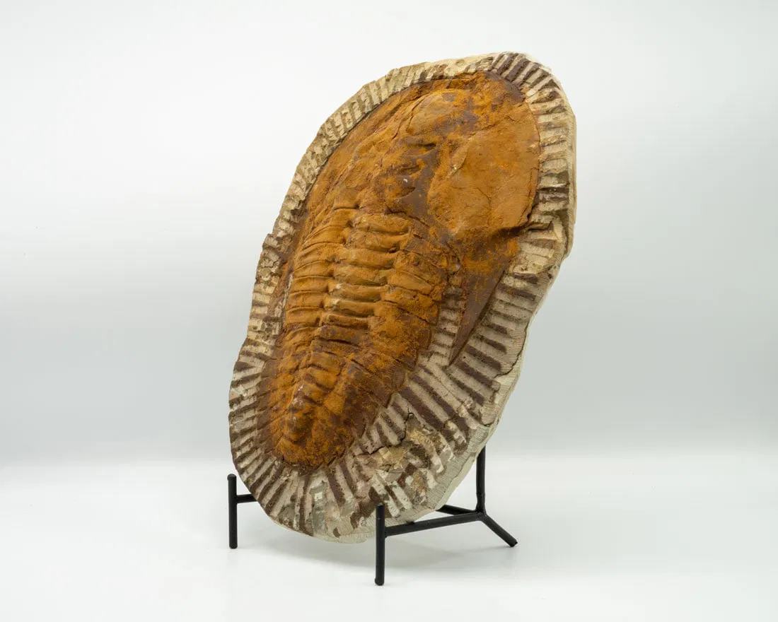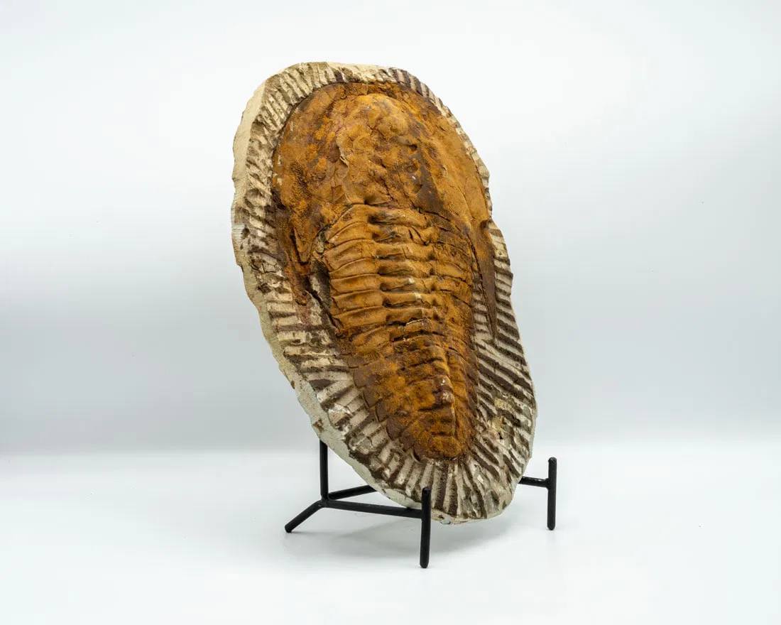 This Cambrian Era specimen found in one of the Pardoxides Quarries and then prepared in the air scribed method is from “Trilobite Alley” in Rissani, Morocco a small dusty town some 500 miles Southeast of Casablanca. 11” x 8” x 1”. 4.11 pounds.