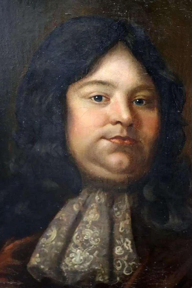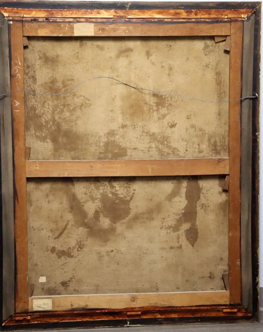 Unsigned and artist unknown. 44x54 inch framed portrait discovered in Highland North Carolina mansion. Portrait bears striking resemblance to William Penn (14 October 1644 ? 30 July 1718) who was an English writer and religious thinker belonging to the Religious Society of Friends (Quakers), and founder of the Province of Pennsylvania, a North American colony of England. He was an early advocate of democracy and religious freedom, notable for his good relations and successful treaties with the Lenape Native Americans. In very good condition with age appropriate patination to canvas and stretcher. There is 1 small 3mm loss and age appropriate craquelure throughout.