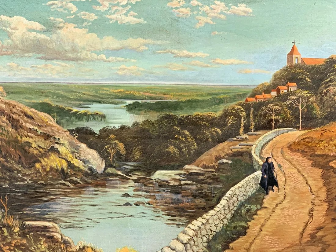 Antique European Oil on Canvas Painting, signed. 36 1/4 x 48 1/4 in with frame. 26 1/2 x 39 in without frame.