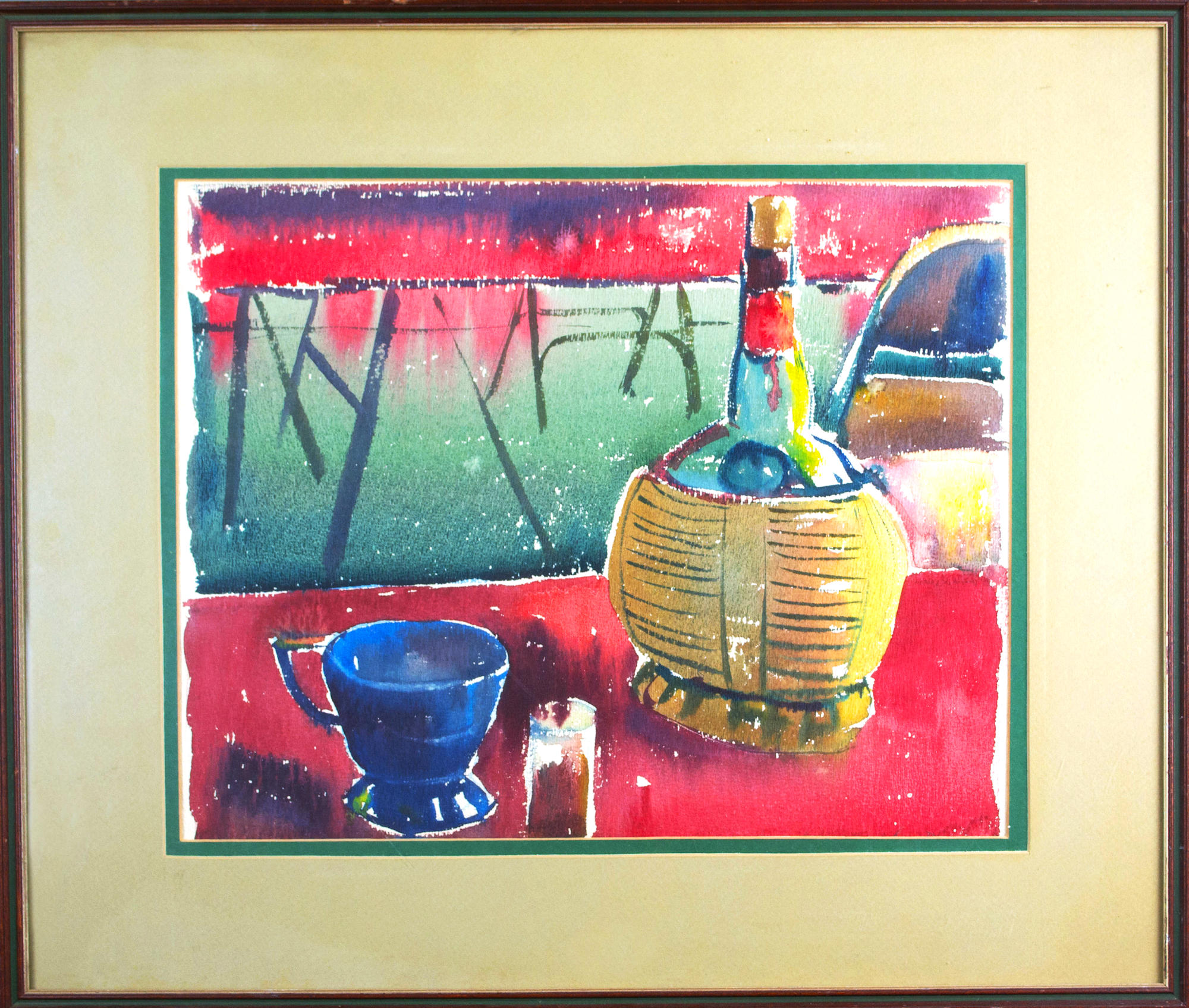 Still Life Of Wine Bottle, Cup And Glass by Anonymous
