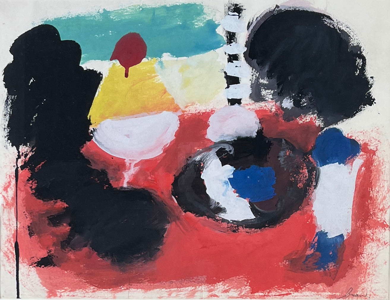 Although we cannot say with certainty that this piece belongs to Brands’s landscape period, collector Benjamin Bernstein noted on the back of the work that it was acquired in January 1987 and titled Landscape. Whether you see an ice cream topped with a cherry or an idyllic countryside view, Brands conveyed a sense of lightness while showing how abstract forms emerge from everyday life.