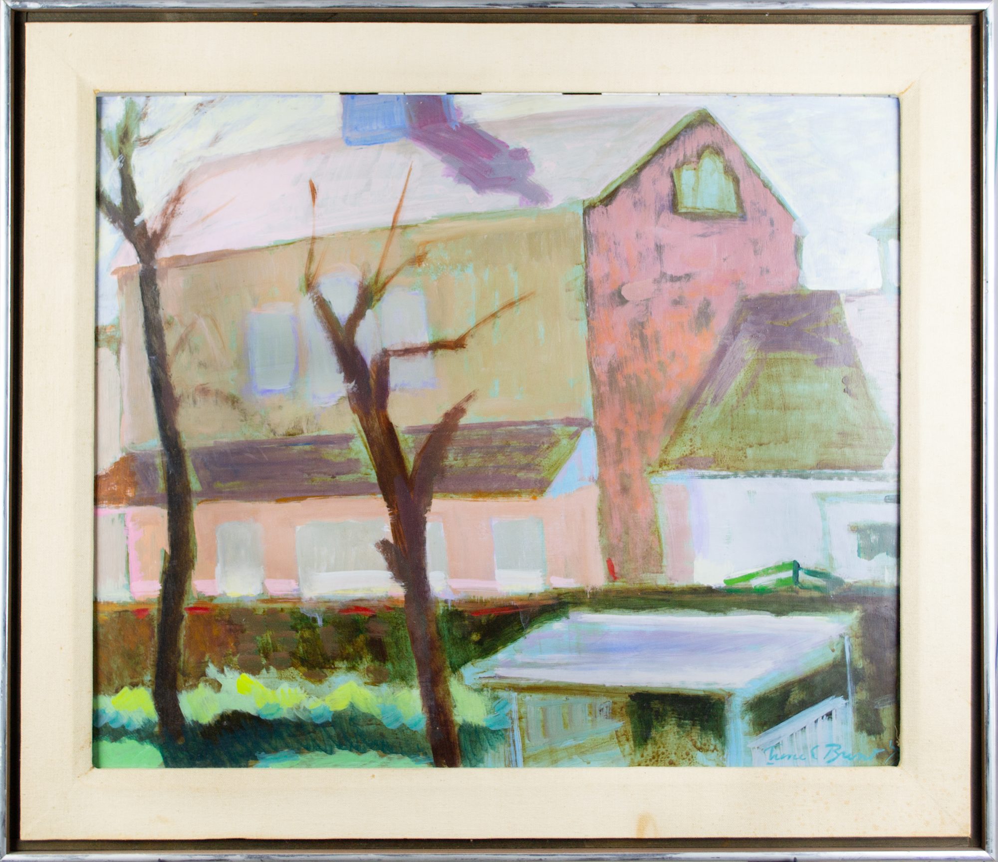 lanscape of farm house, presumably in fall or winter (no leaves on