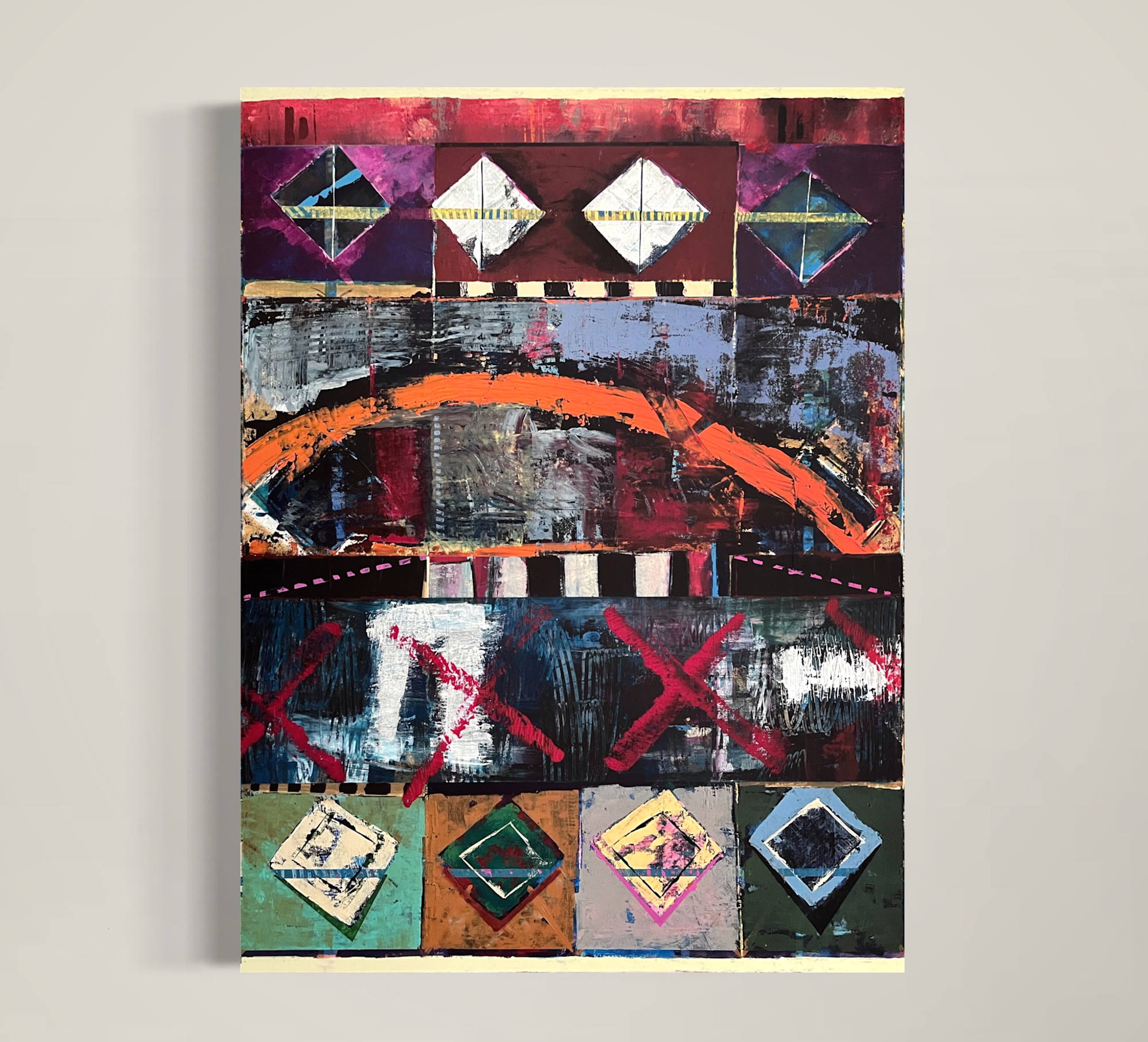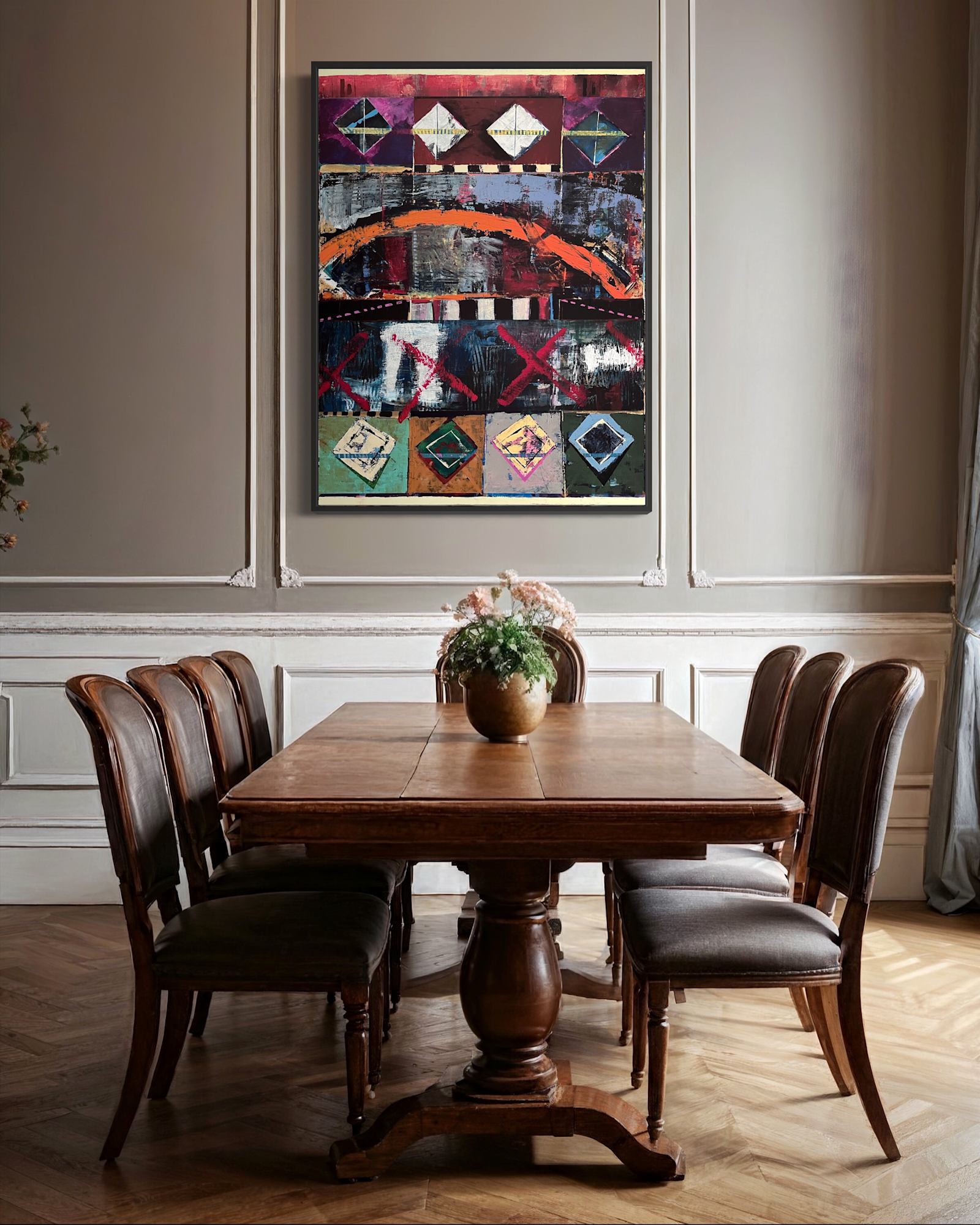 • Acrylic, charcoal, spray paint on canvas