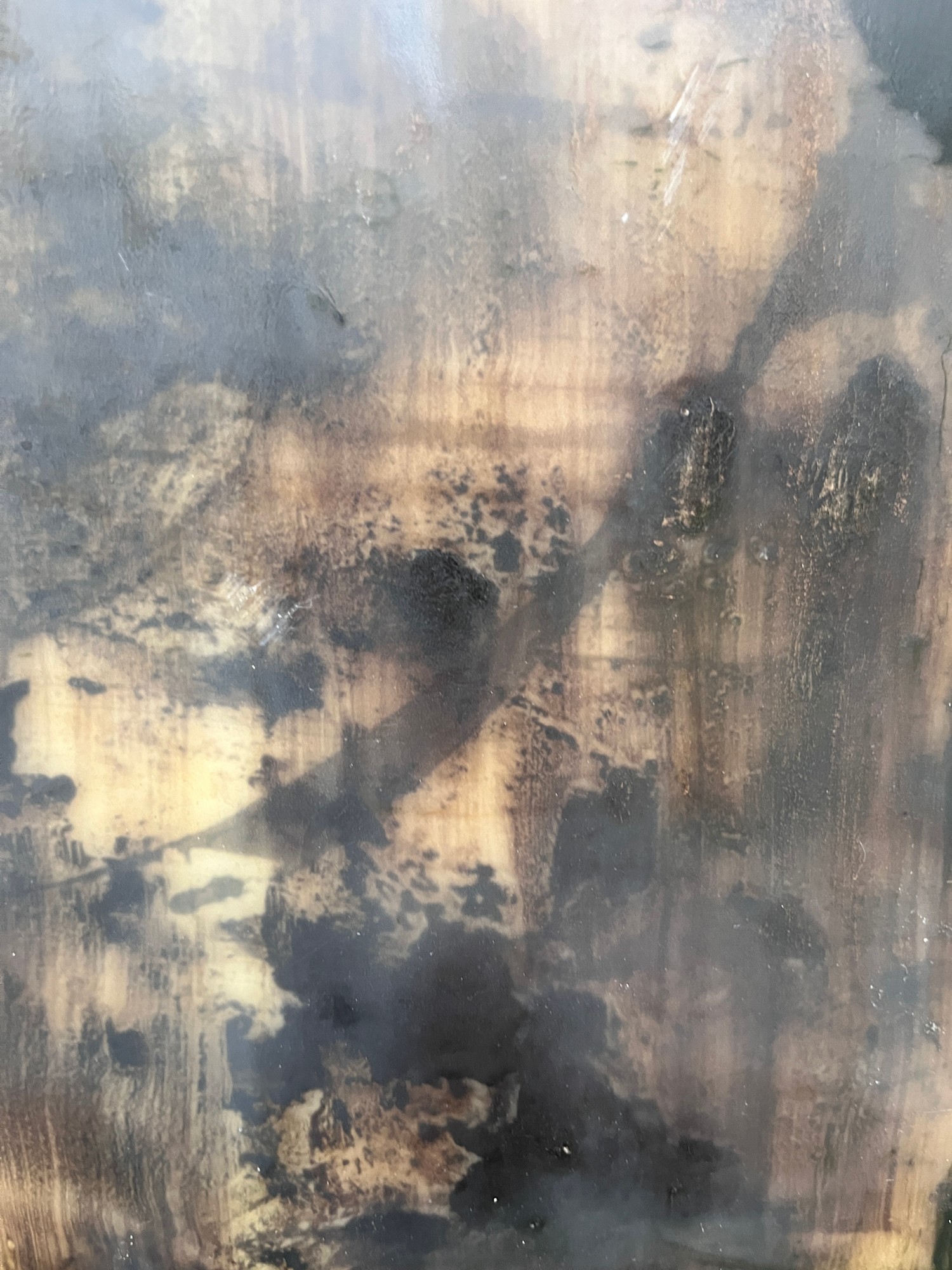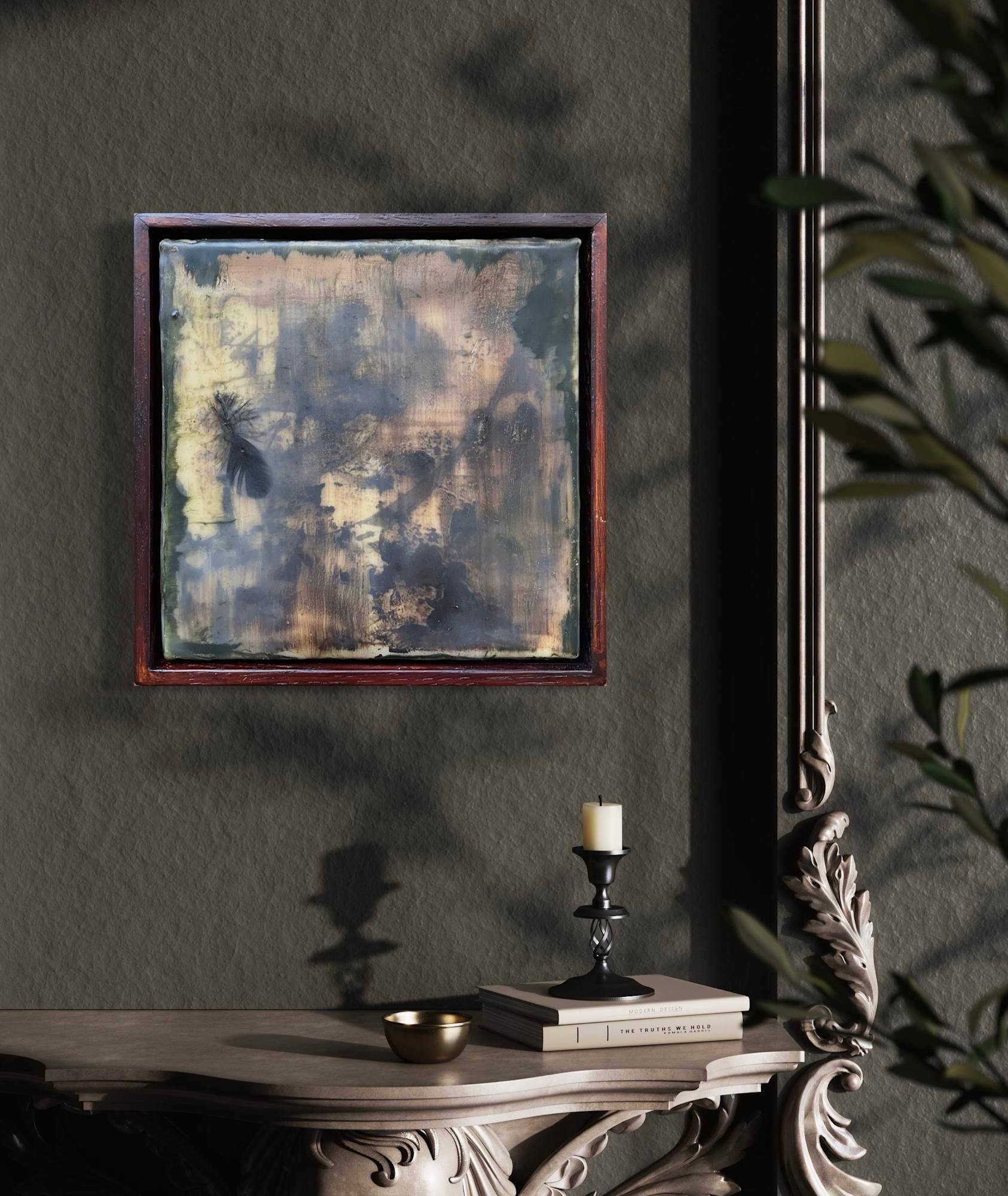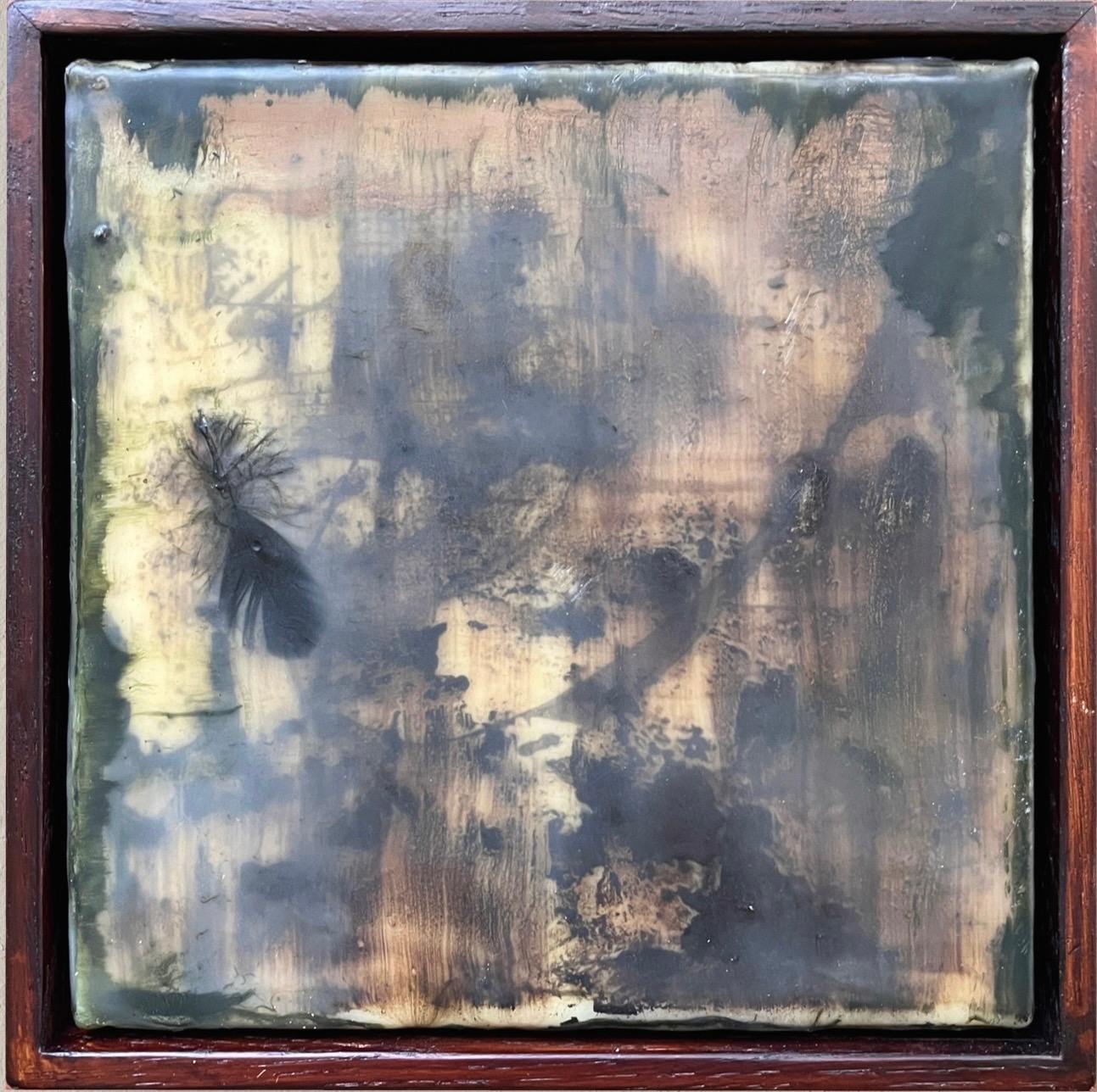Mixed Media : Solid Encaustic Wax, Ink, Ash, Pigment, Tūī Feather on Wood, Oak Frame