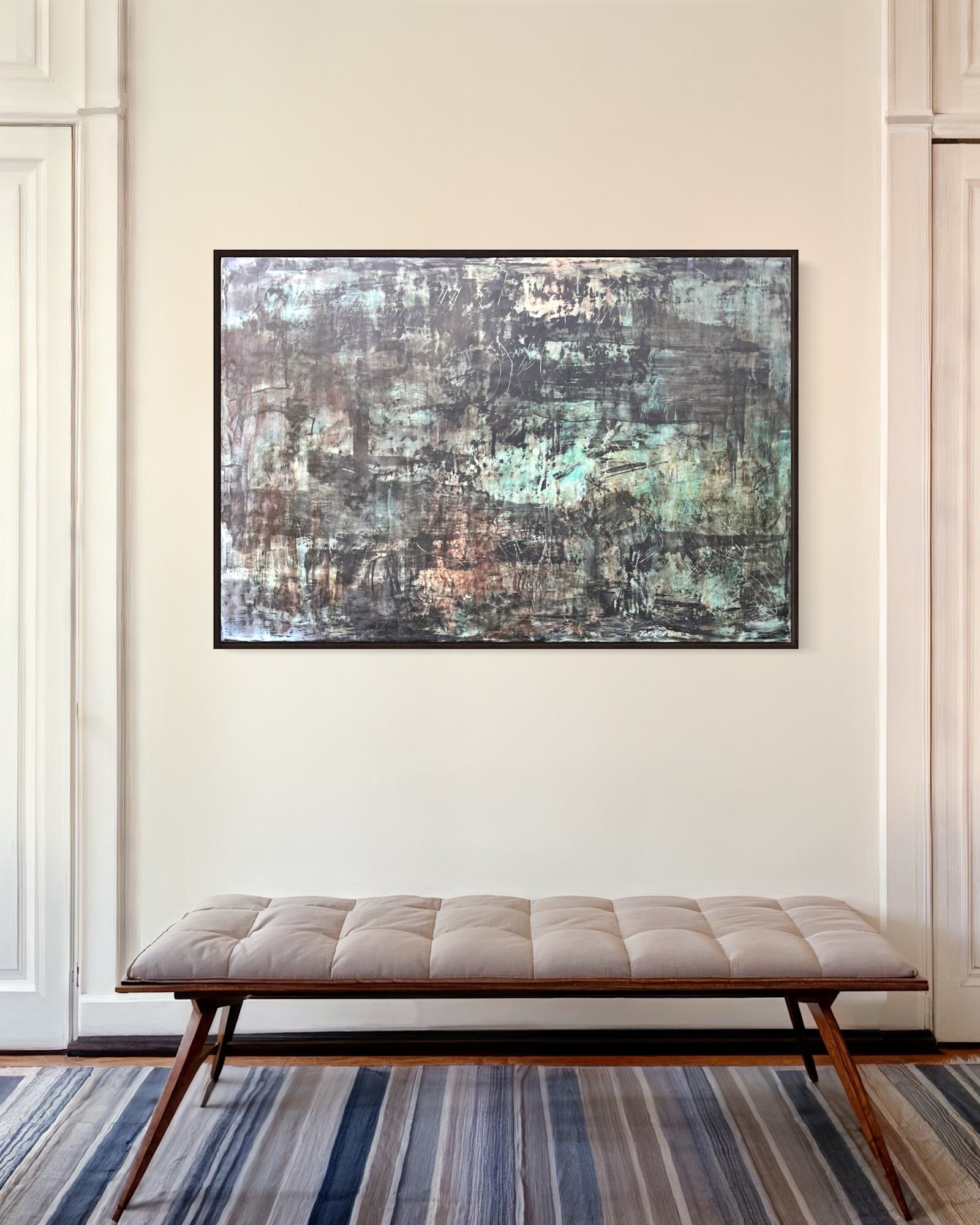 Mixed Media : Encaustic Wax, Acrylic, Oil, Ink on Wood Oak Frame