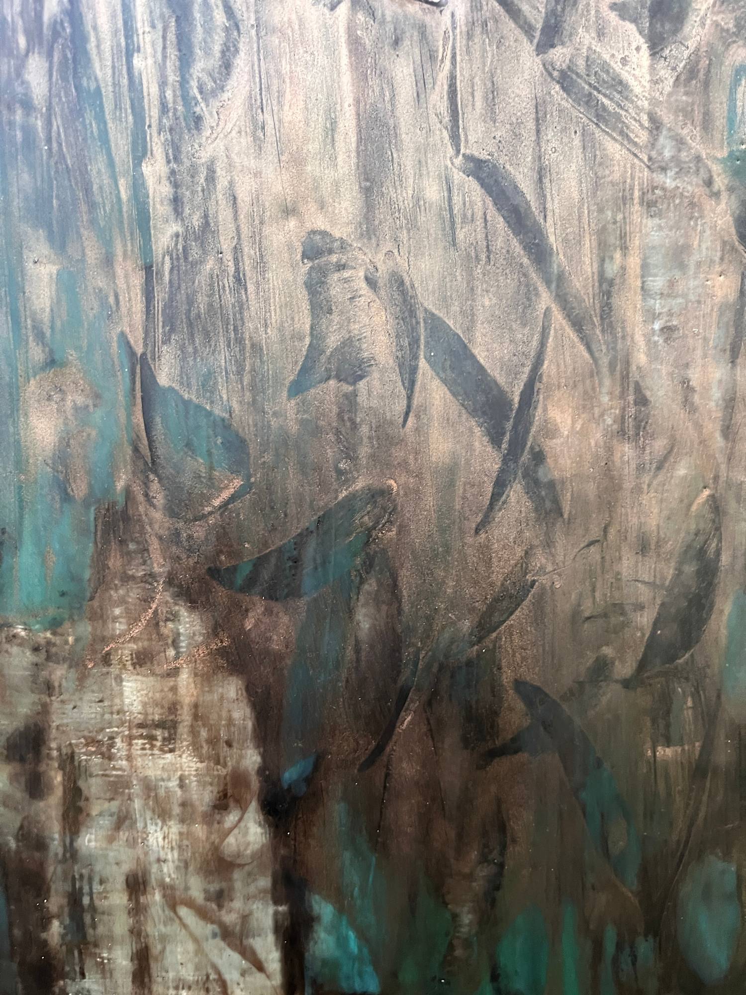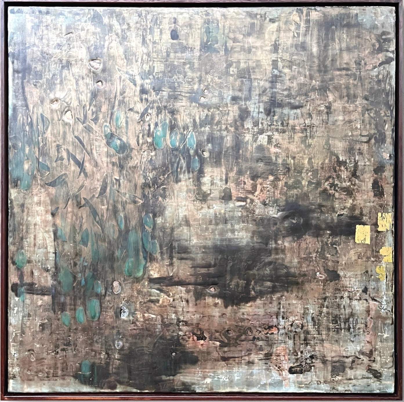 Mixed Media : Encaustic Wax, Acrylic, Ink, Pigment & Collage on Wood, Oak Frame
