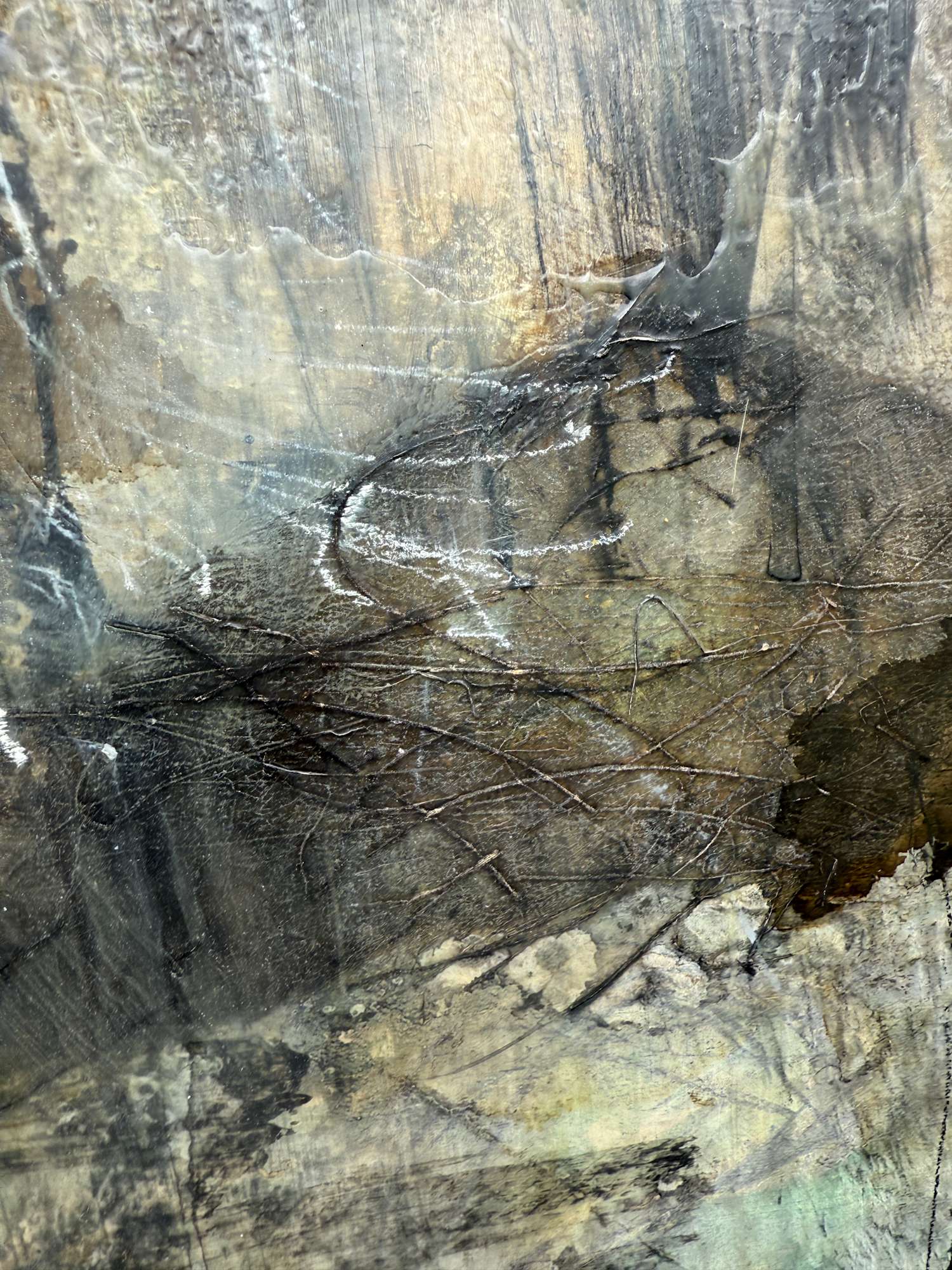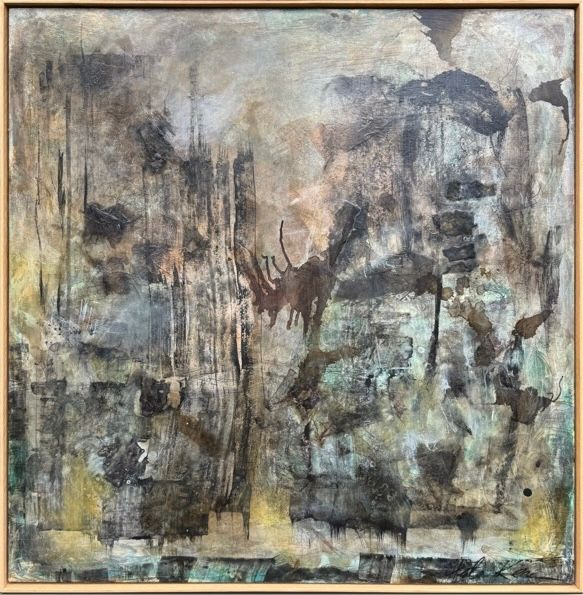 Mixed Media : Encaustic Wax, Acrylic, Ink, Harakeke, Oil on Wood Solid Oak Frame