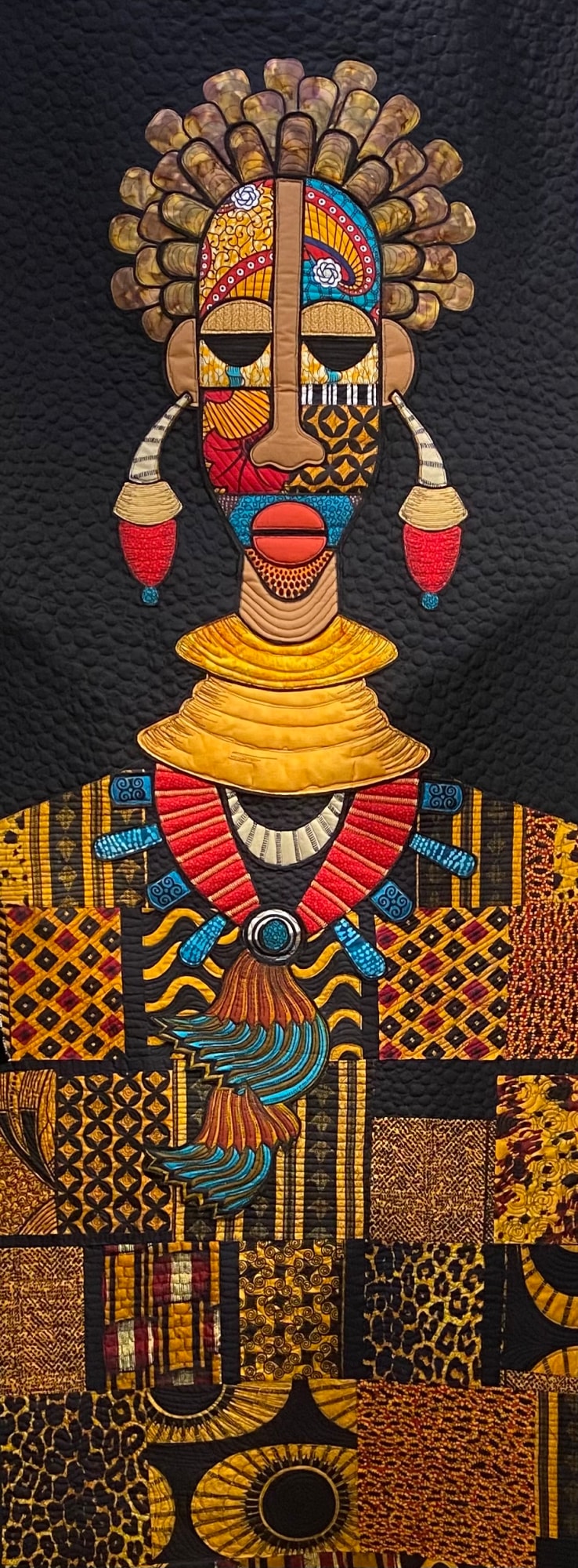 Queen Mother depicts the strength of all mothers but particularly that of Aminah Brenda Lyn Robinson. She stood tall in her beliefs as a historical storyteller and creative inspiration to many Central Ohio artists.