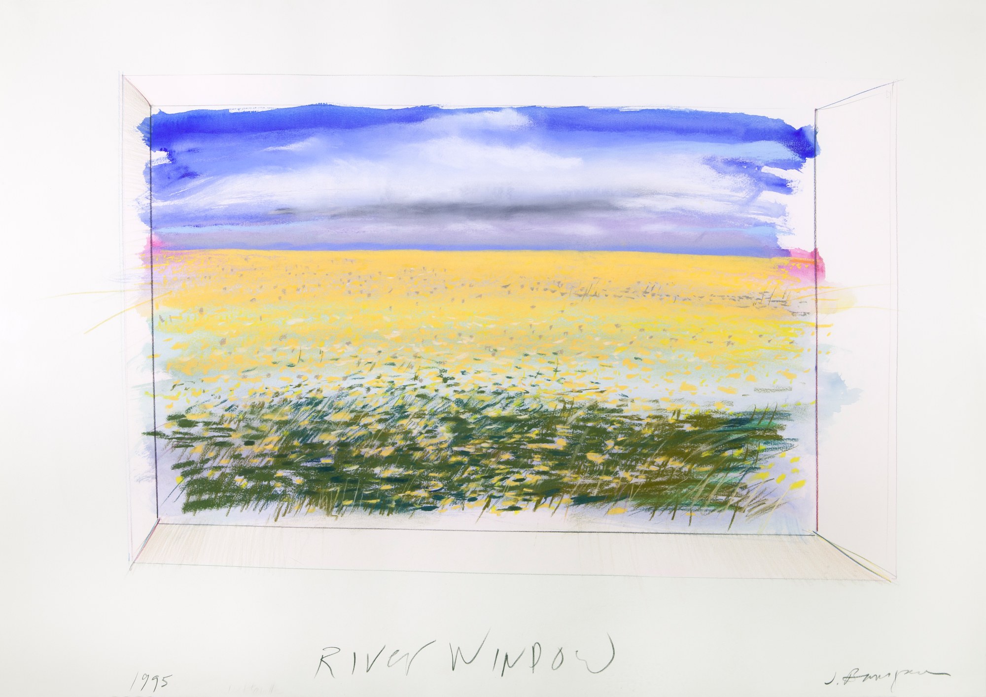 In the mid-1980’s, after multiple trips throughout Mexico and Europe, he began working with soft pastels and watercolors and began creating a series of interior scenes followed by his series of landscapes as seen outside his window. This piece was part of his "River Window" series.