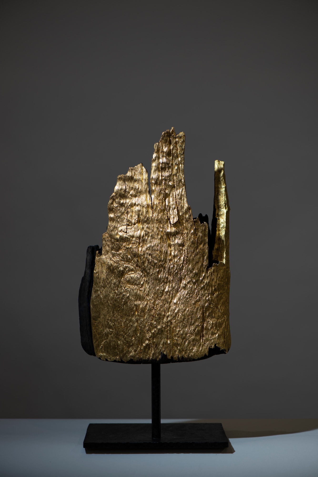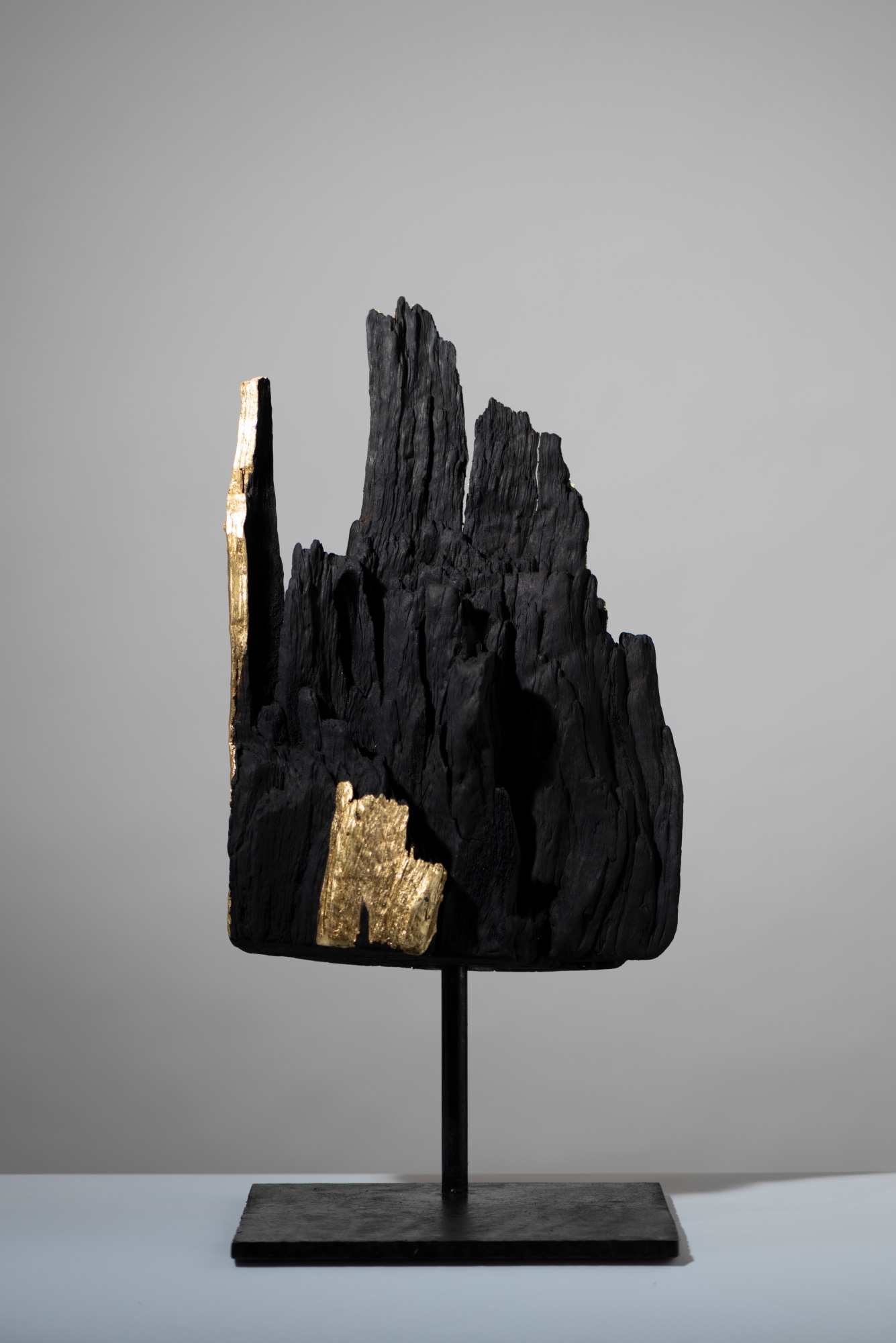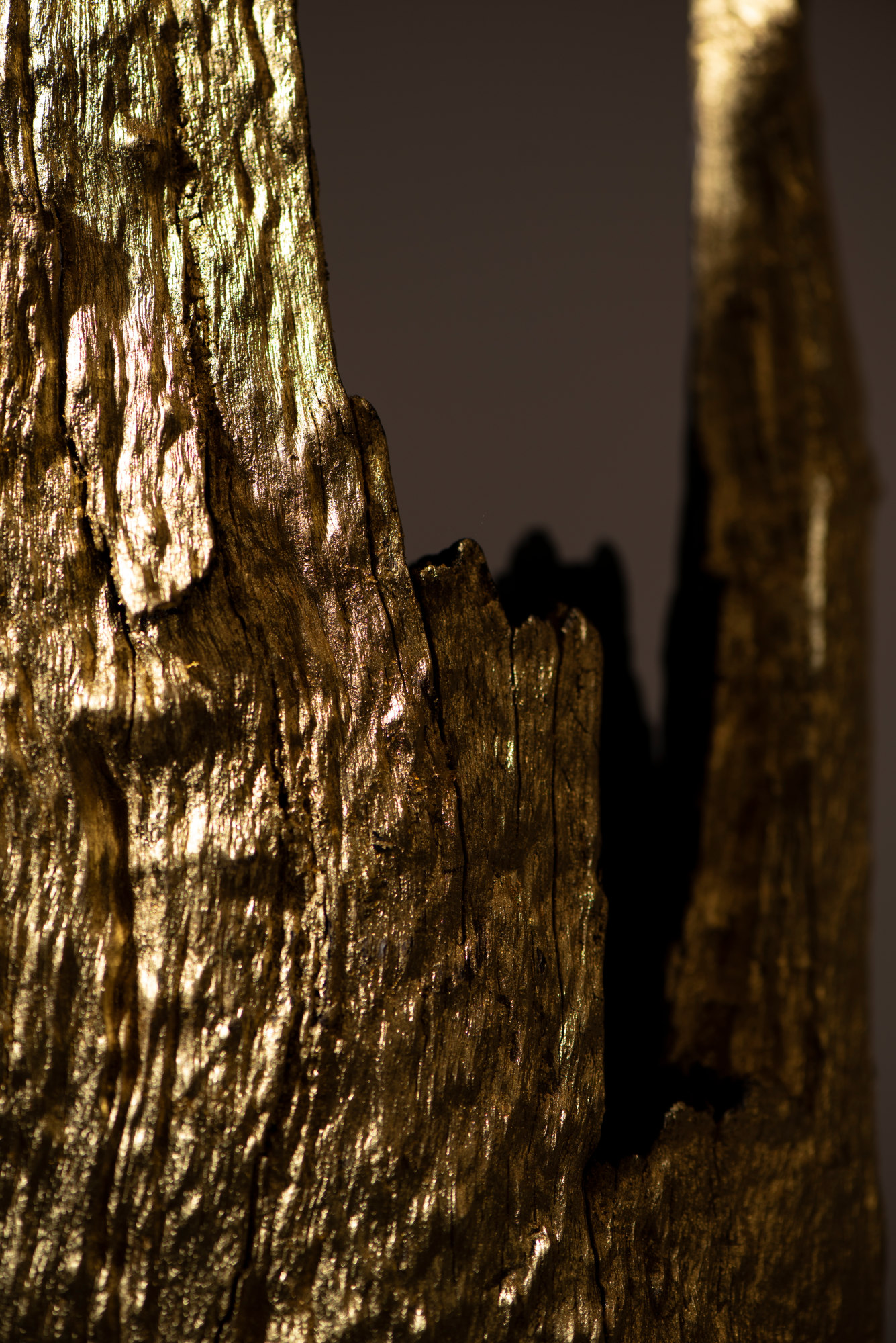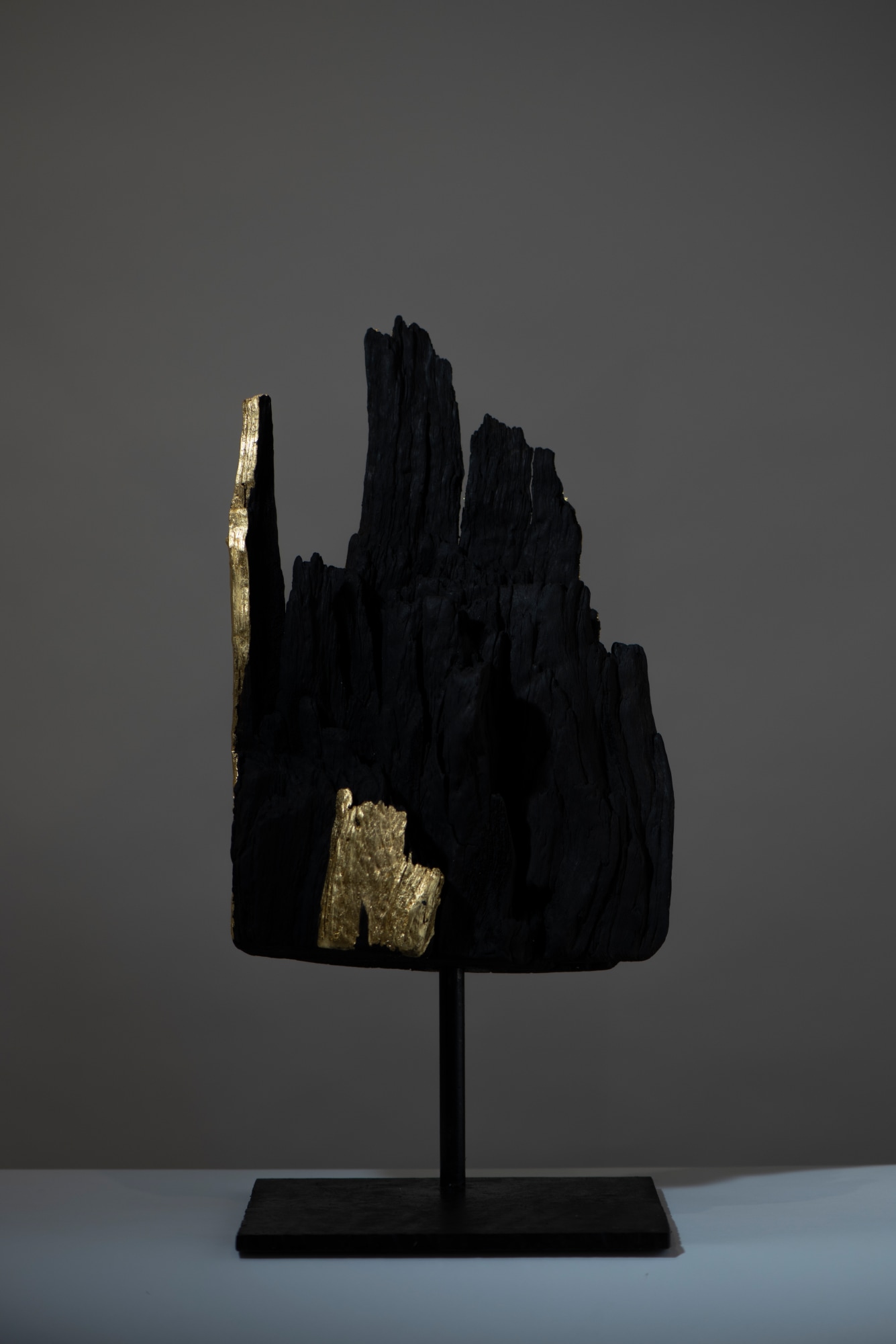 - Reclaimed Burnt Wood, 23 Karat Gold and Steel