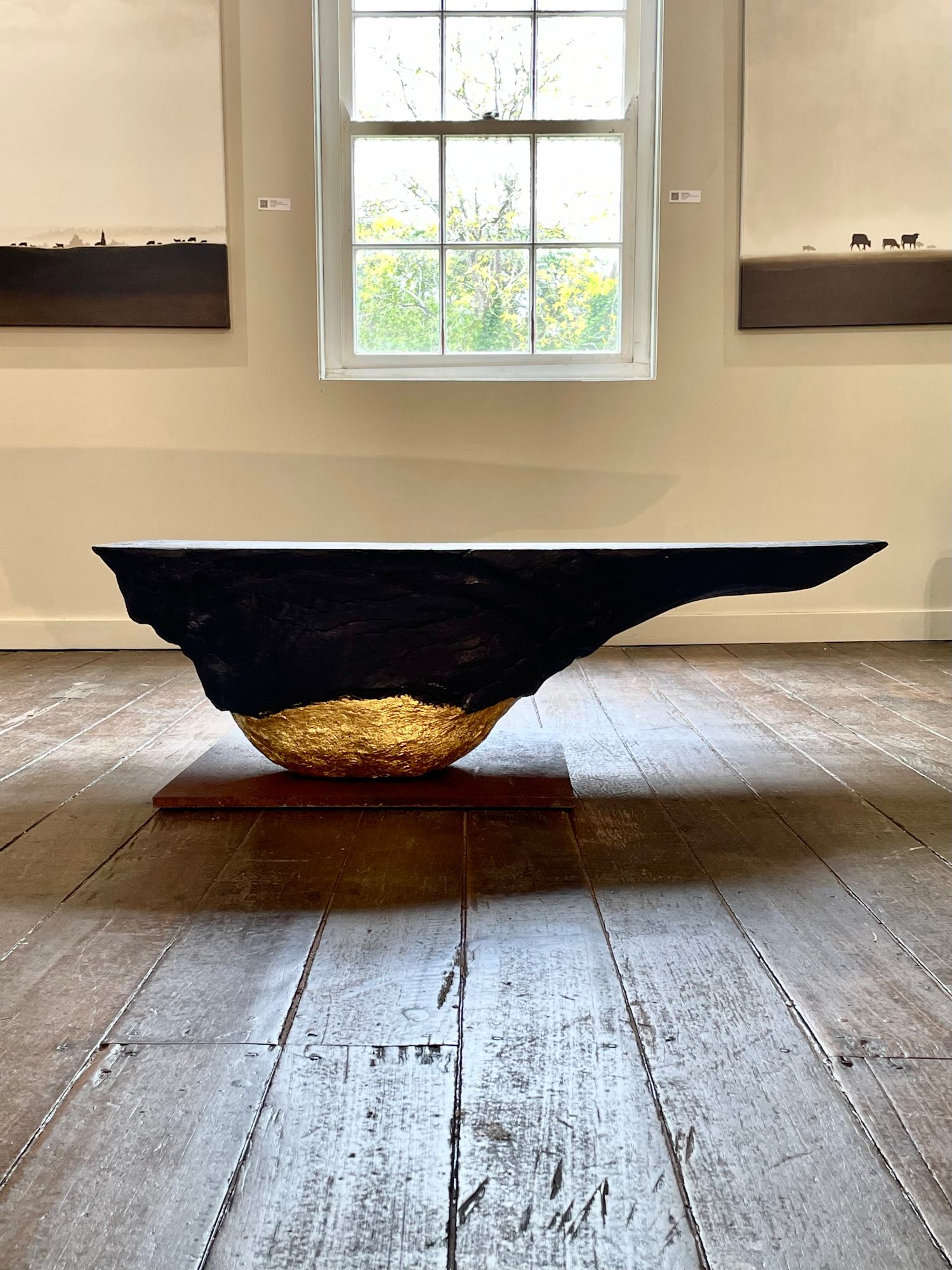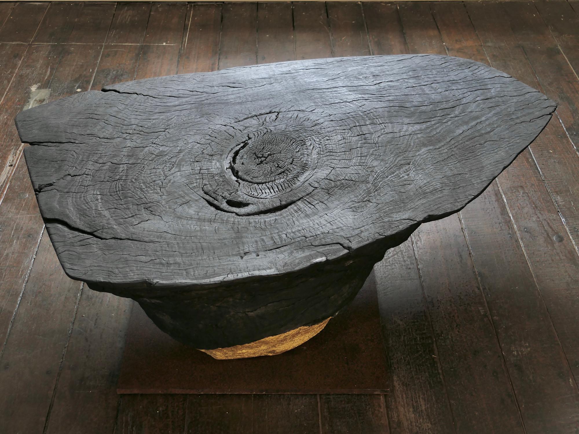 - Shaped and Burnt Wood, Steel, 23K Gold Leaf