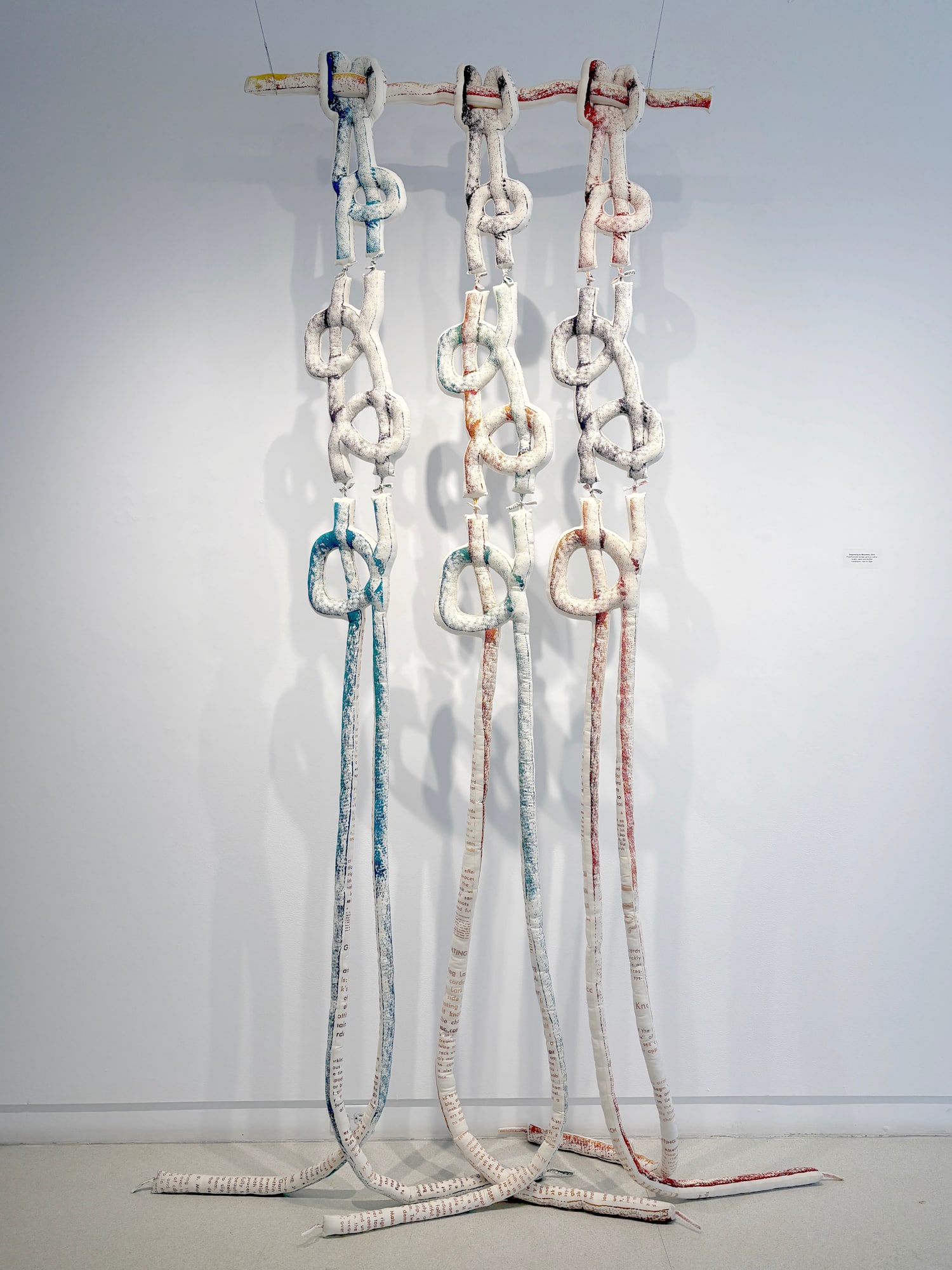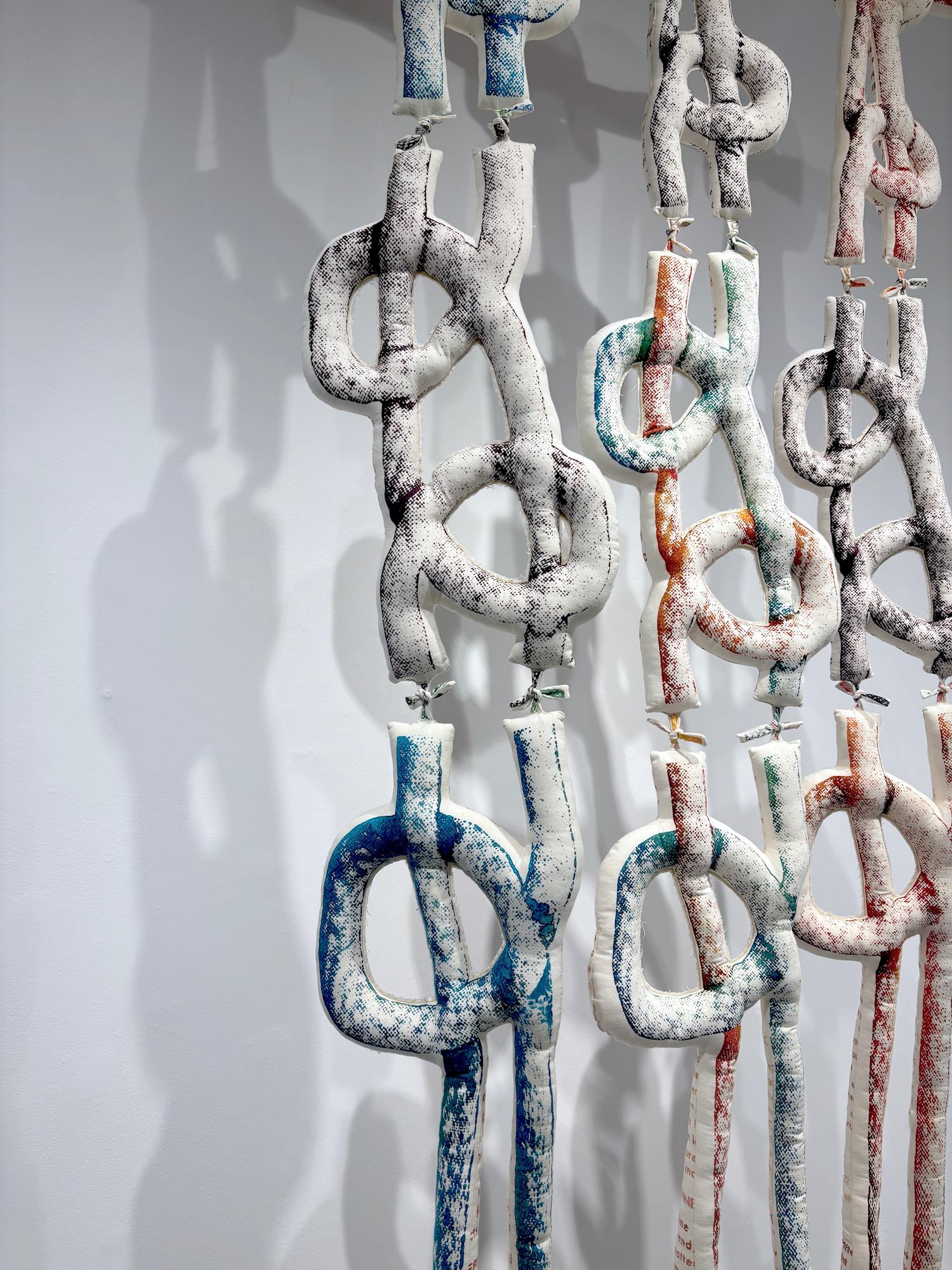 Polychromatic screen print on cotton muslin, sewn and stuffed Installation
