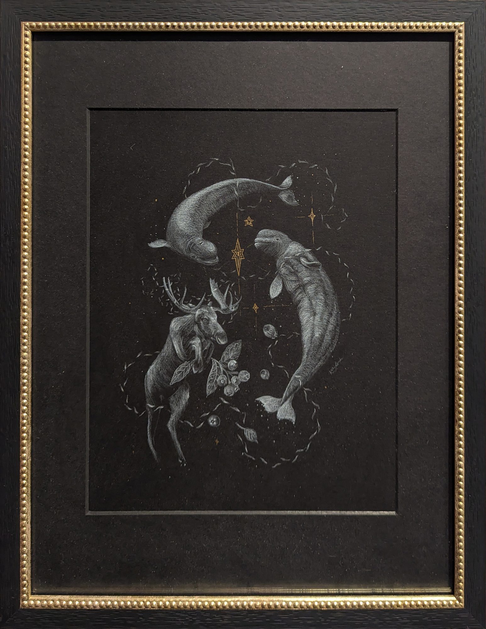White Pencil & Watercolour on Black Paper