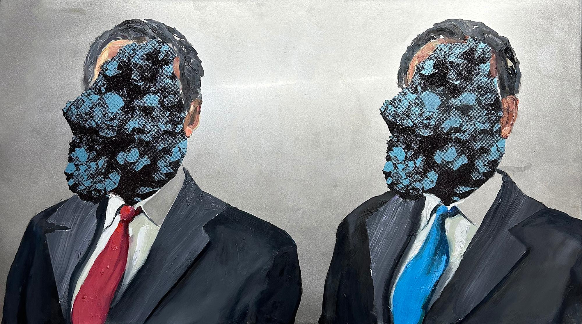 Oil, ink, and crushed glass on steel