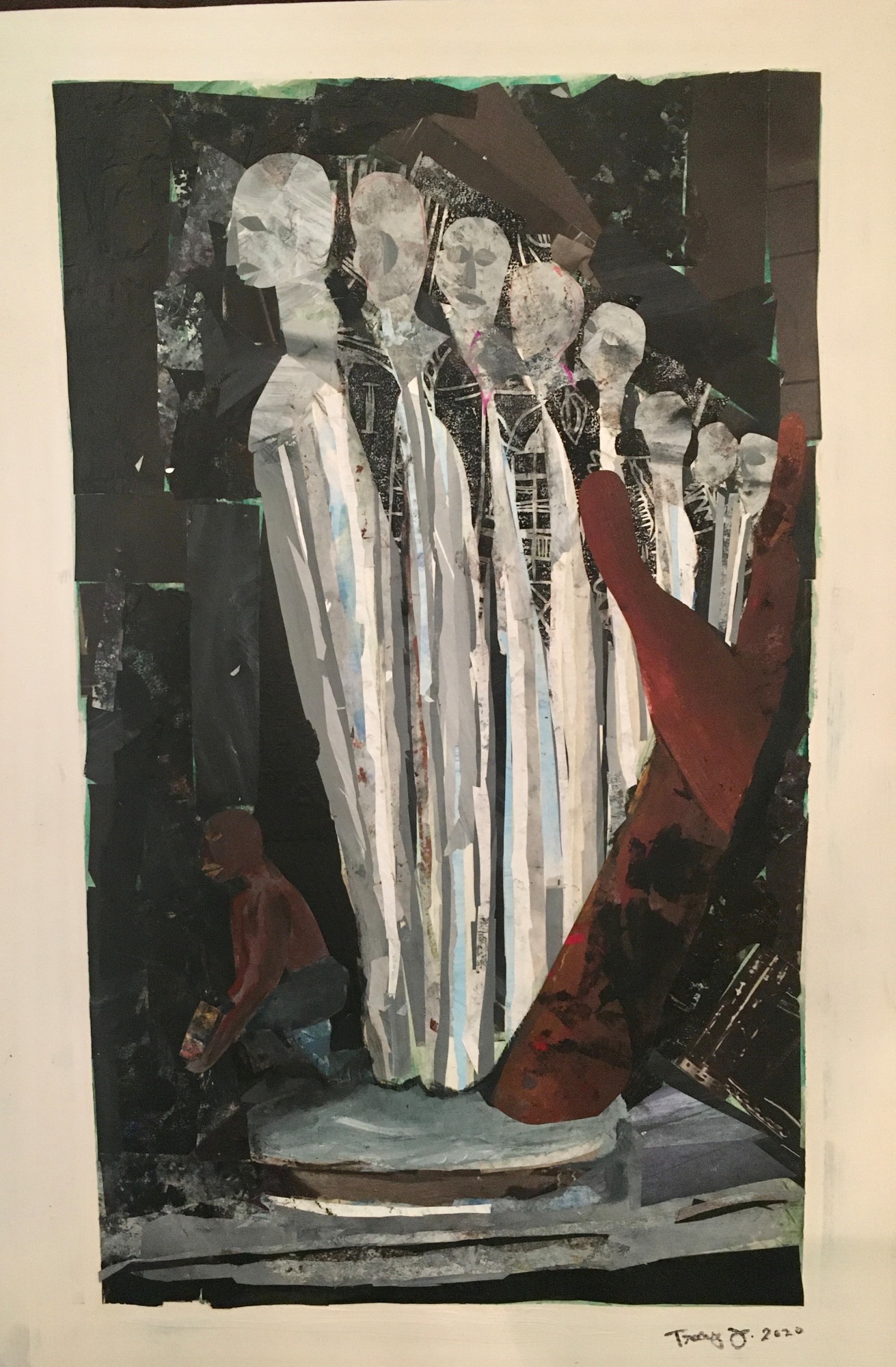 My collage pays homage to the iconic work "Lift Every Voice and Sing," also referred to as "The Harp," crafted by the talented African-American artist Augusta Savage. Inspired by the profound impact of this plaster sculpture, I embarked on a creative journey, pushing the boundaries of my artistic abilities through the medium of tissue paper collage. With time and effort, I sought to capture the essence and power of the original piece, endeavoring to recreate its evocative presence in a fresh and dynamic way. This collage stands as a testament to the enduring significance of Savage's artwork and serves as a personal exploration of the tissue paper collage technique's potential for artistic expression.