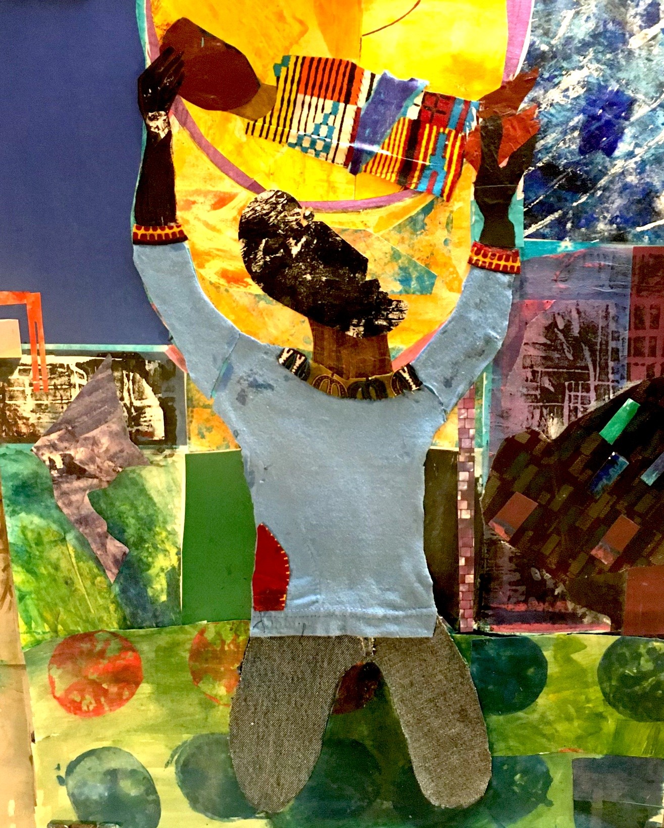 "To Be Held and to Behold" is inspired by the Patrick Morelli statue in Atlanta and Alex Haley's autobiography, "Roots." This artwork explores the importance of parental and spiritual connections. It reflects on the powerful scene of a father lifting and naming his child, as depicted in "Roots." In a world filled with violence, suicide, and lack of ambition, this artwork highlights the need for nurturing these connections, especially for our youth. It serves as a reminder of the love, guidance, and protection that parents provide, as well as the solace and purpose found in spiritual connection.