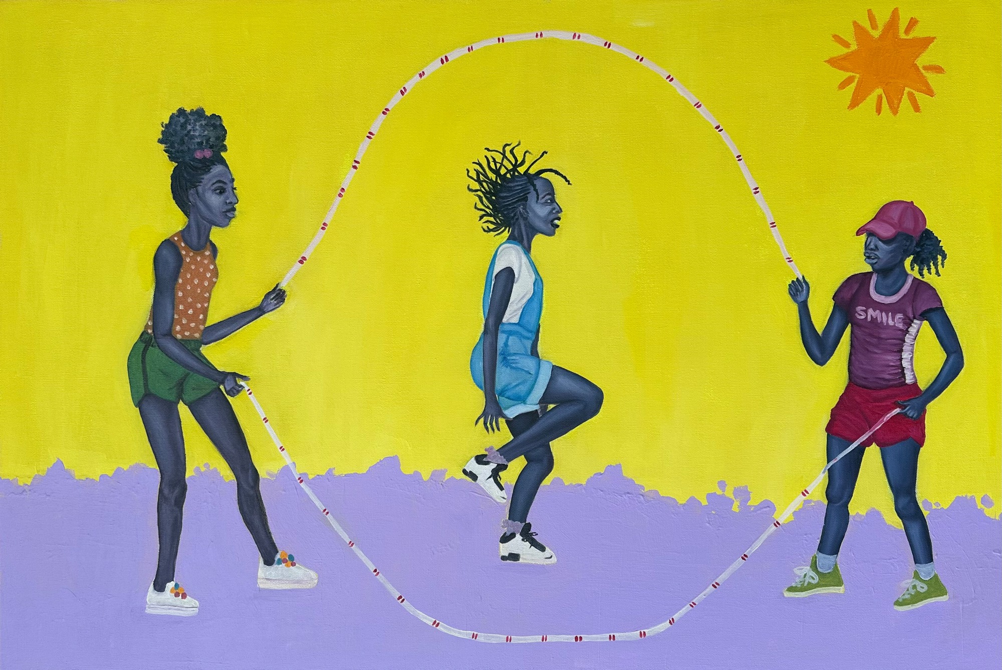 When the Sun Shines, We Shine Together is 1 of 12 original pieces created as part of the collection, Restorative Joy: Recollecting Black Innocence. The collection was started in 2020, and is a counter response to the negative imagery and narratives associated with black and brown bodies.