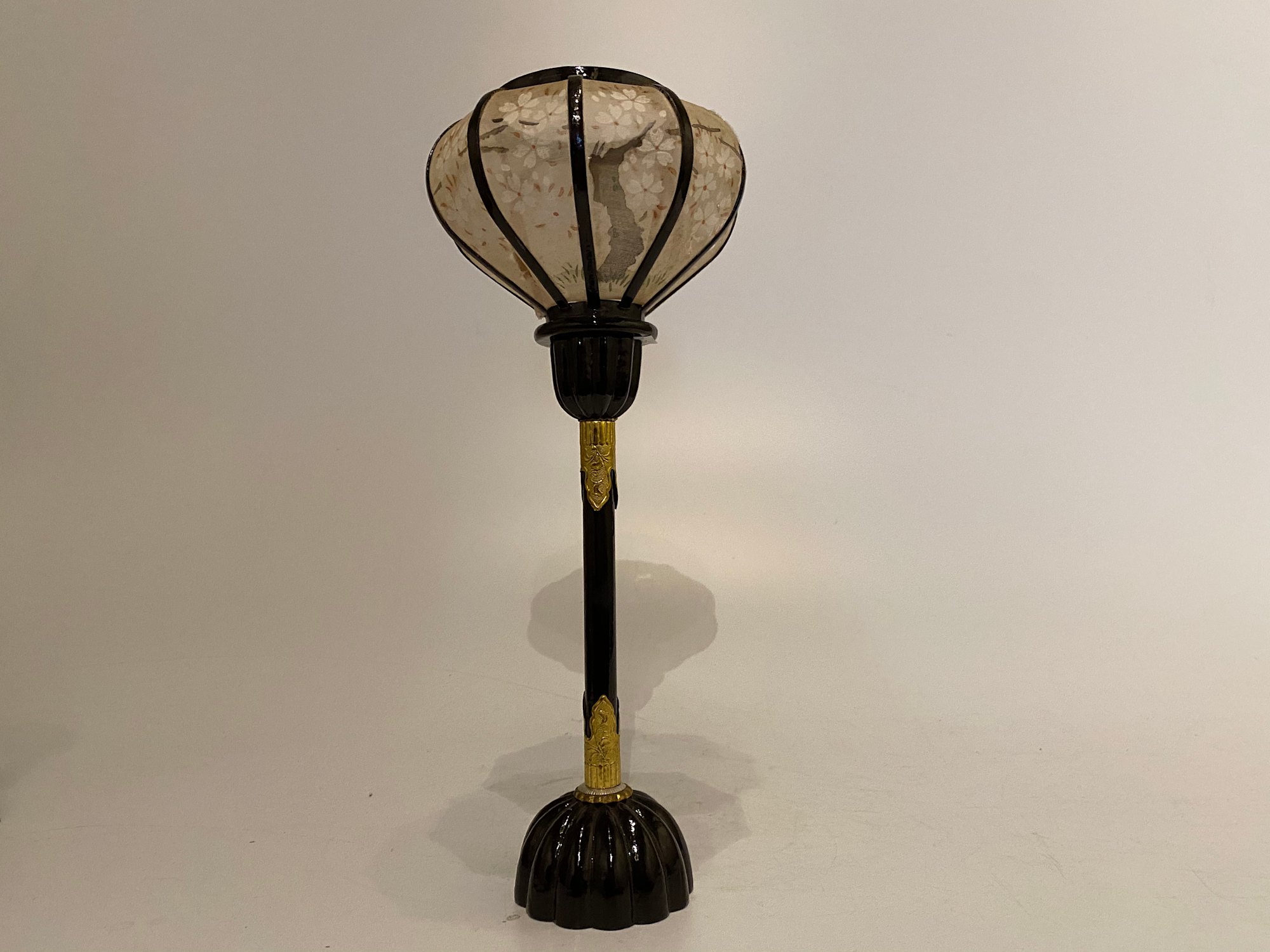 Lantern with stand that stands beside the emperor or empress from a collection of hina ningyō (Girl's Day dolls). It stands on the first tier of the set.