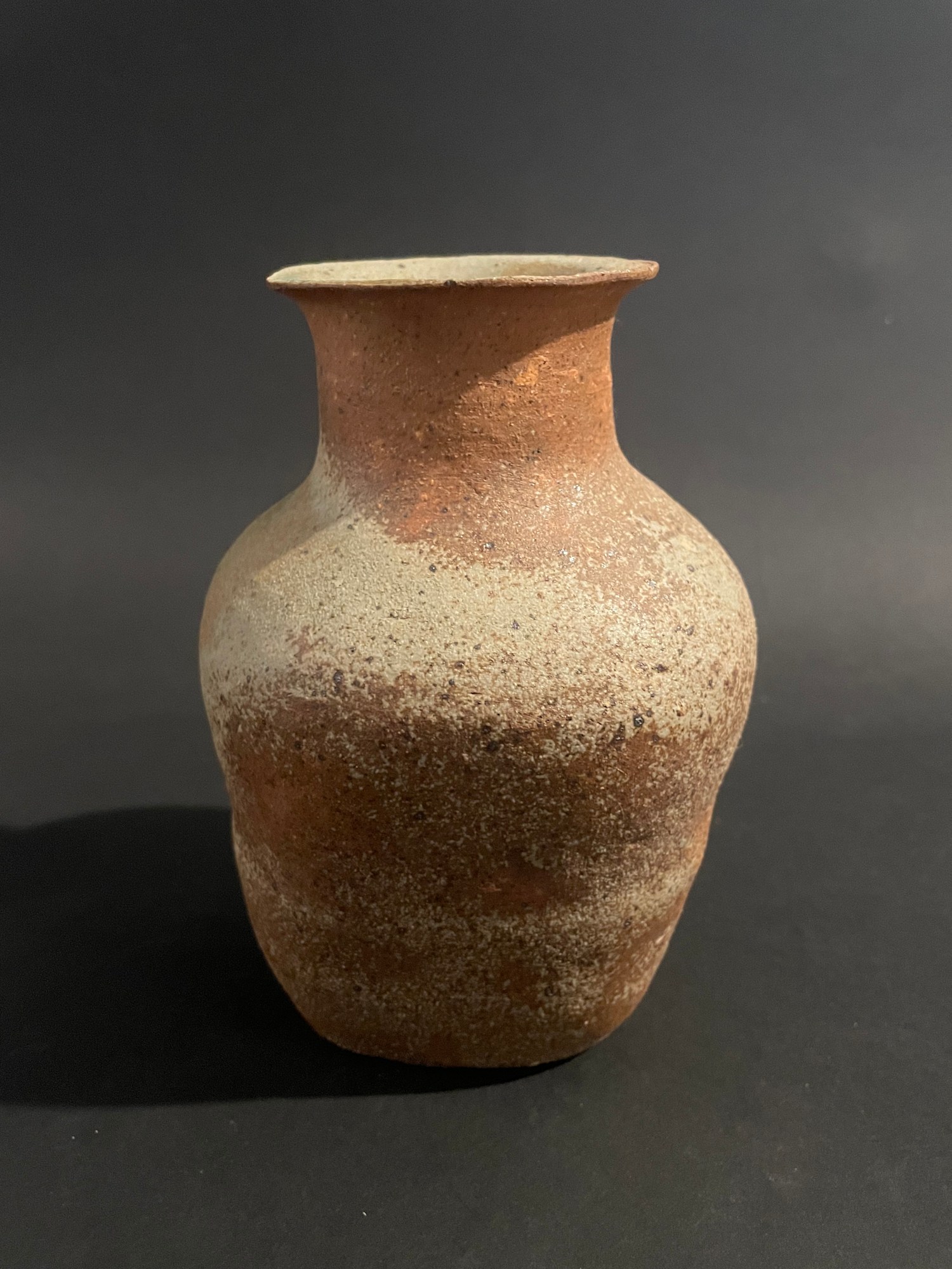 Small ikebana vase crafted in unglazed terracotta, with a warm, earthy surface and subtle asymmetry characteristic of hand-thrown wares.