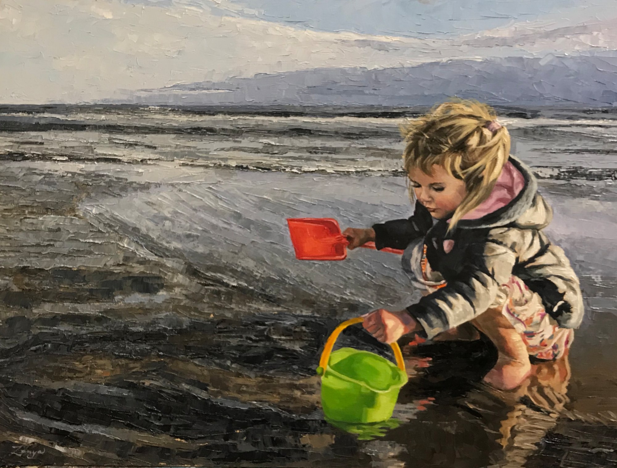 My 5 year old daughter absorbed in play with the sea Magherabeg, Wicklow, Winter 2019
