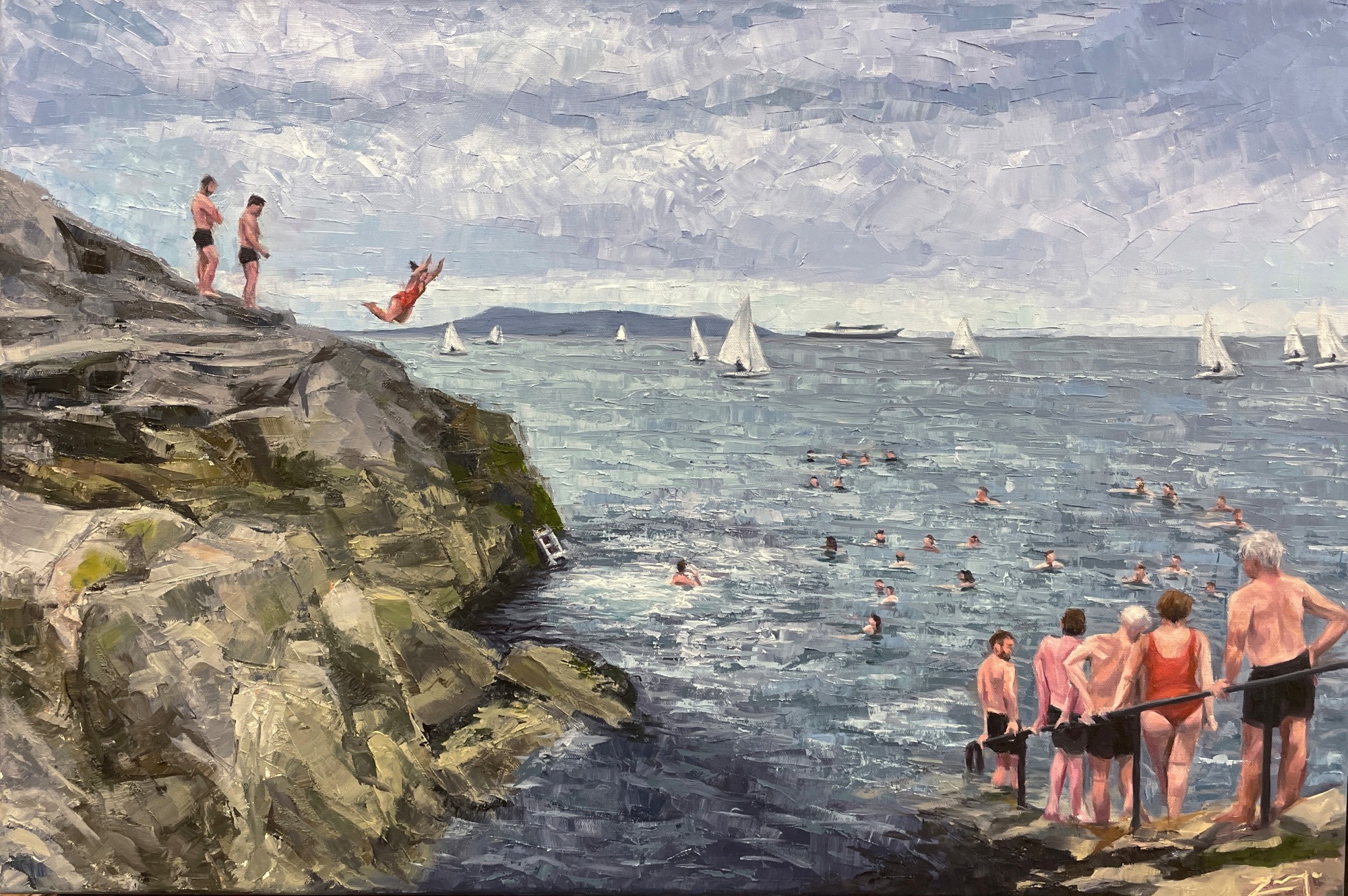 I love the atmosphere at this swimming spot with so much bustle to witness - swimmers jumping and diving or entering and exiting the water from the steps. All range of emotions are on display from trepidation and shock to joy and gratification.