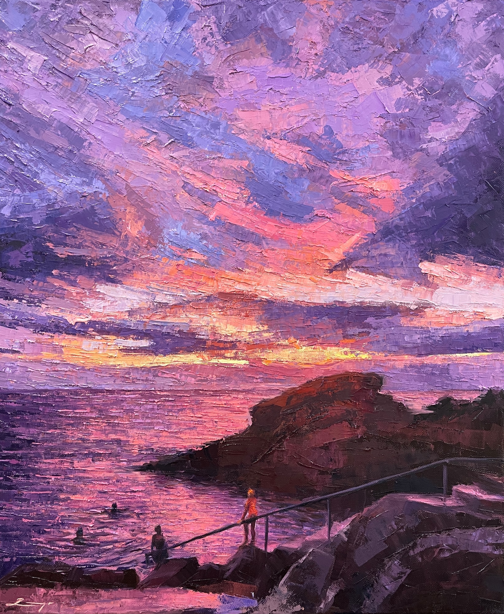 A swimrise at the Forty Foot in March 2022. The sky was such a stunning array of purples, pinks and oranges.