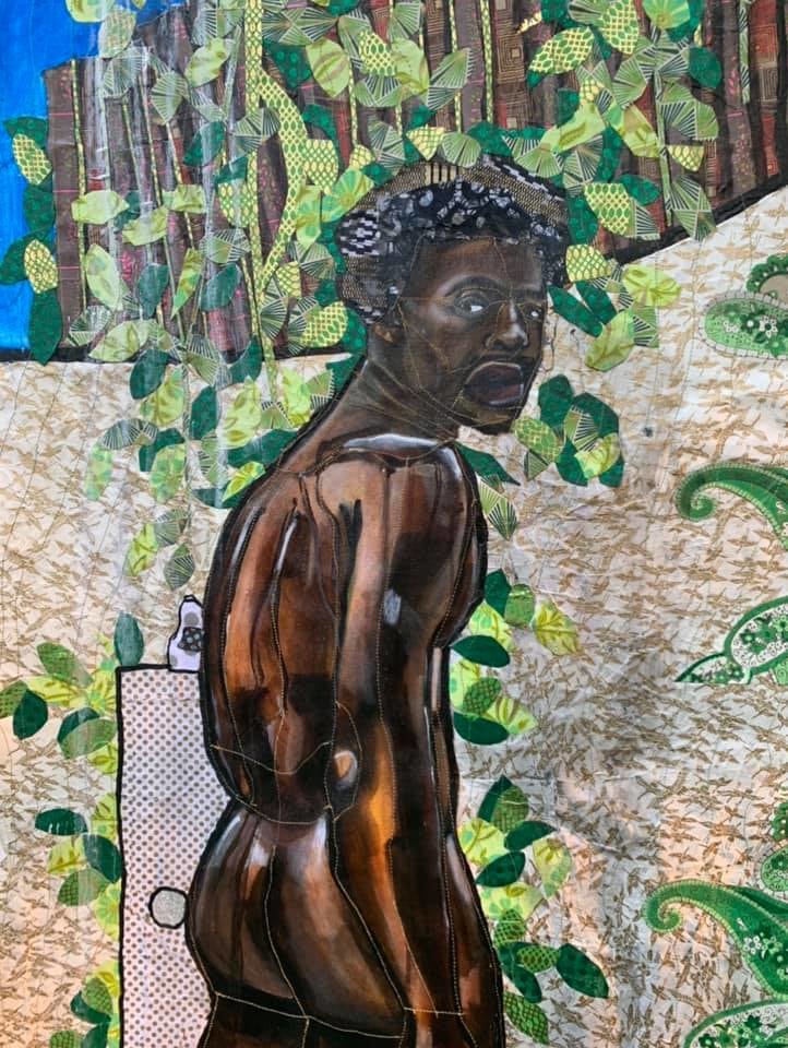 My works are collage tapestries meant to be in conversation with the cultural practice of hand-assembled artworks. From the rich culture of the Gullah Geechee to Harriet Tubman to Louis Armstrong, assemblage has been a powerful means by which Black stories are told and passed down over time. Through critical fabulation, the physical pieces seek to exist as historical items telling untold stories of Black rest.