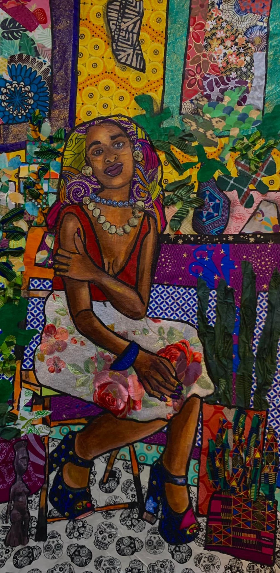My works are collage tapestries meant to be in conversation with the cultural practice of hand-assembled artworks. From the rich culture of the Gullah Geechee to Harriet Tubman to Louis Armstrong, assemblage has been a powerful means by which Black stories are told and passed down over time. Through critical fabulation, the physical pieces seek to exist as historical items telling untold stories of Black rest.