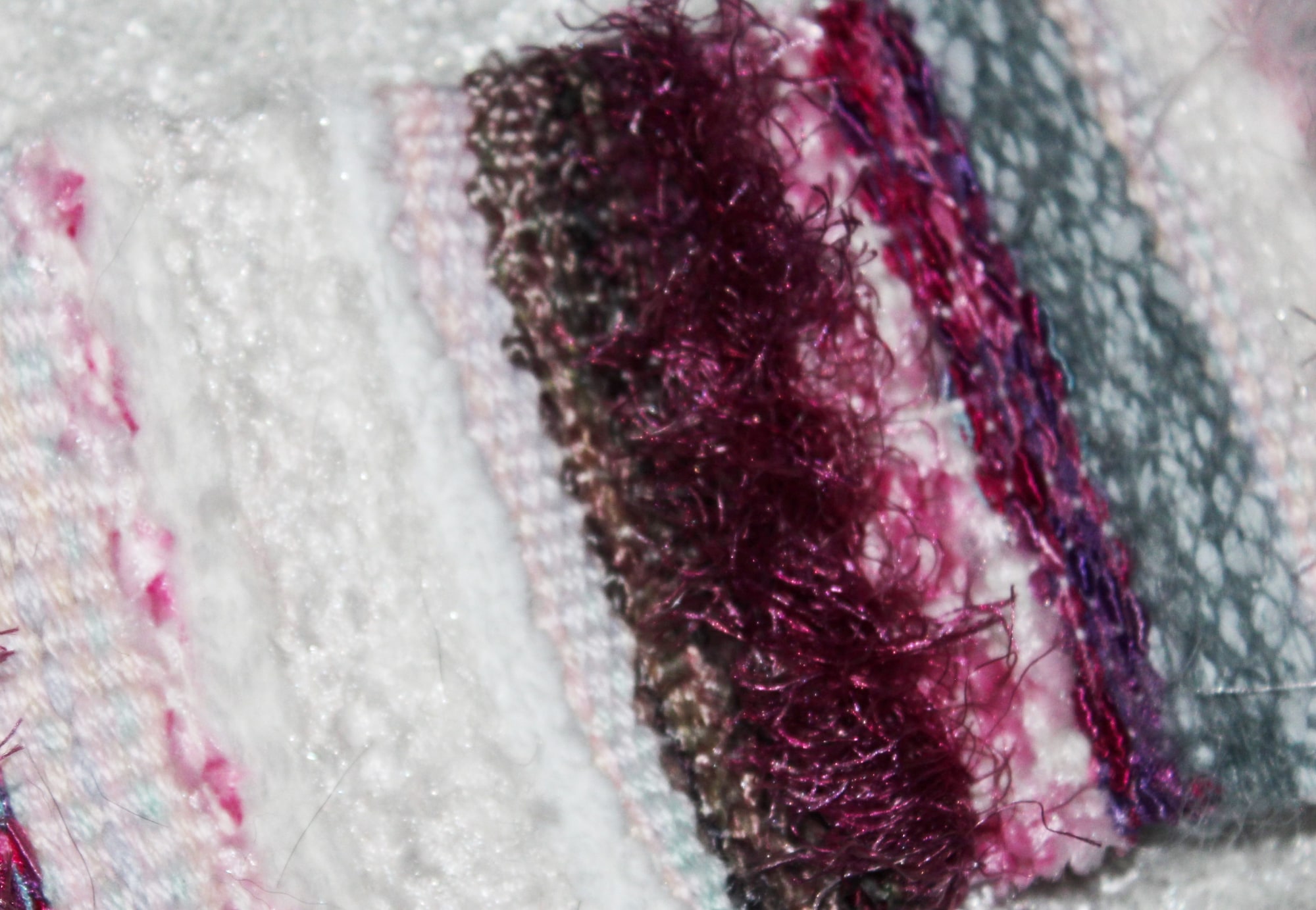 Fiber Art Creations using repurposed fiber & jewelry, found treasures from a non profit that supports the developmentally & intellectually challenged, to create a new mini tapestry wall hanging. Support a cause with your purchase of Artwork created in the USA.