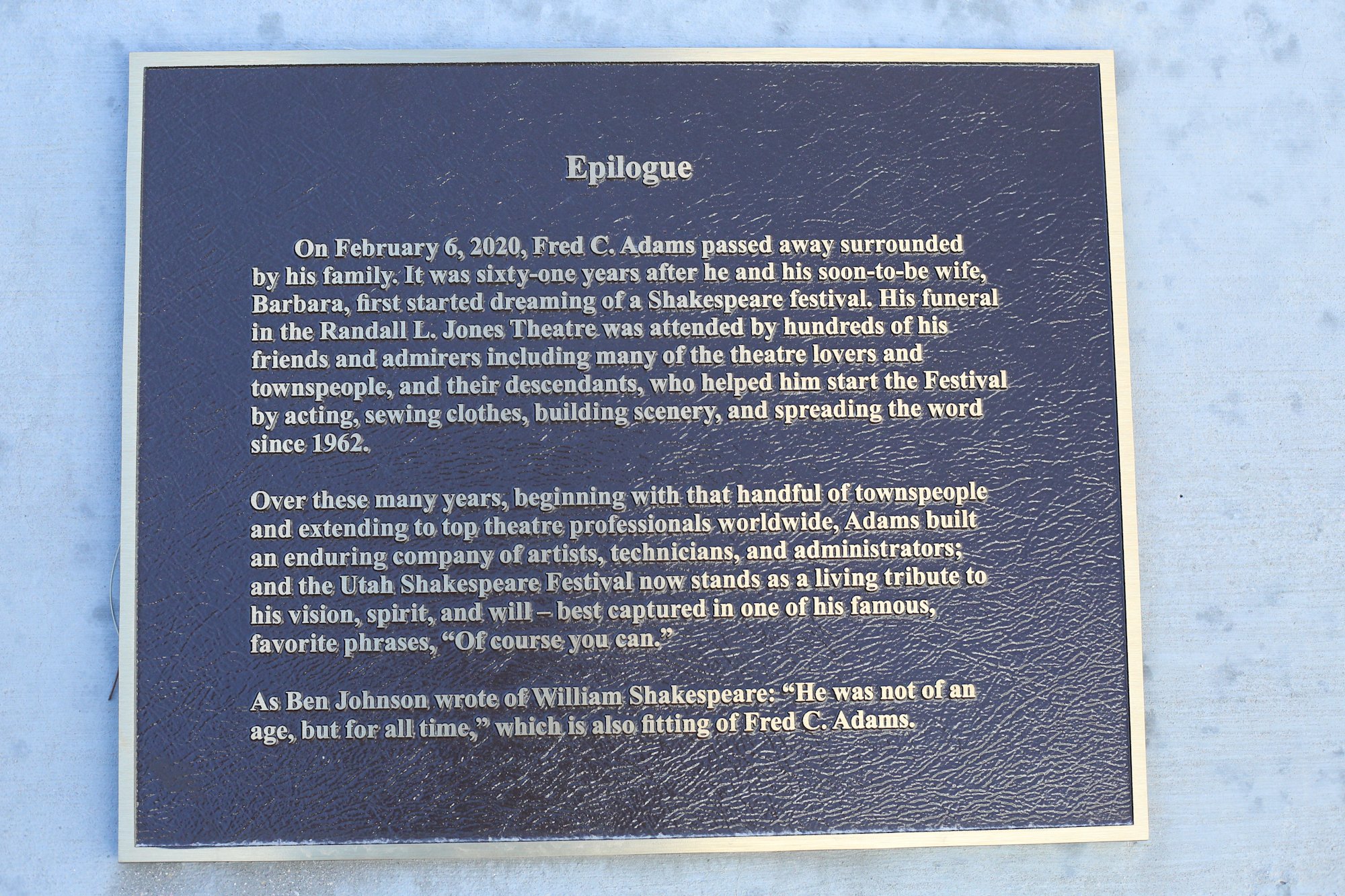 - Fred C. Adams Founder Utah Shakespearean Festival, 2006