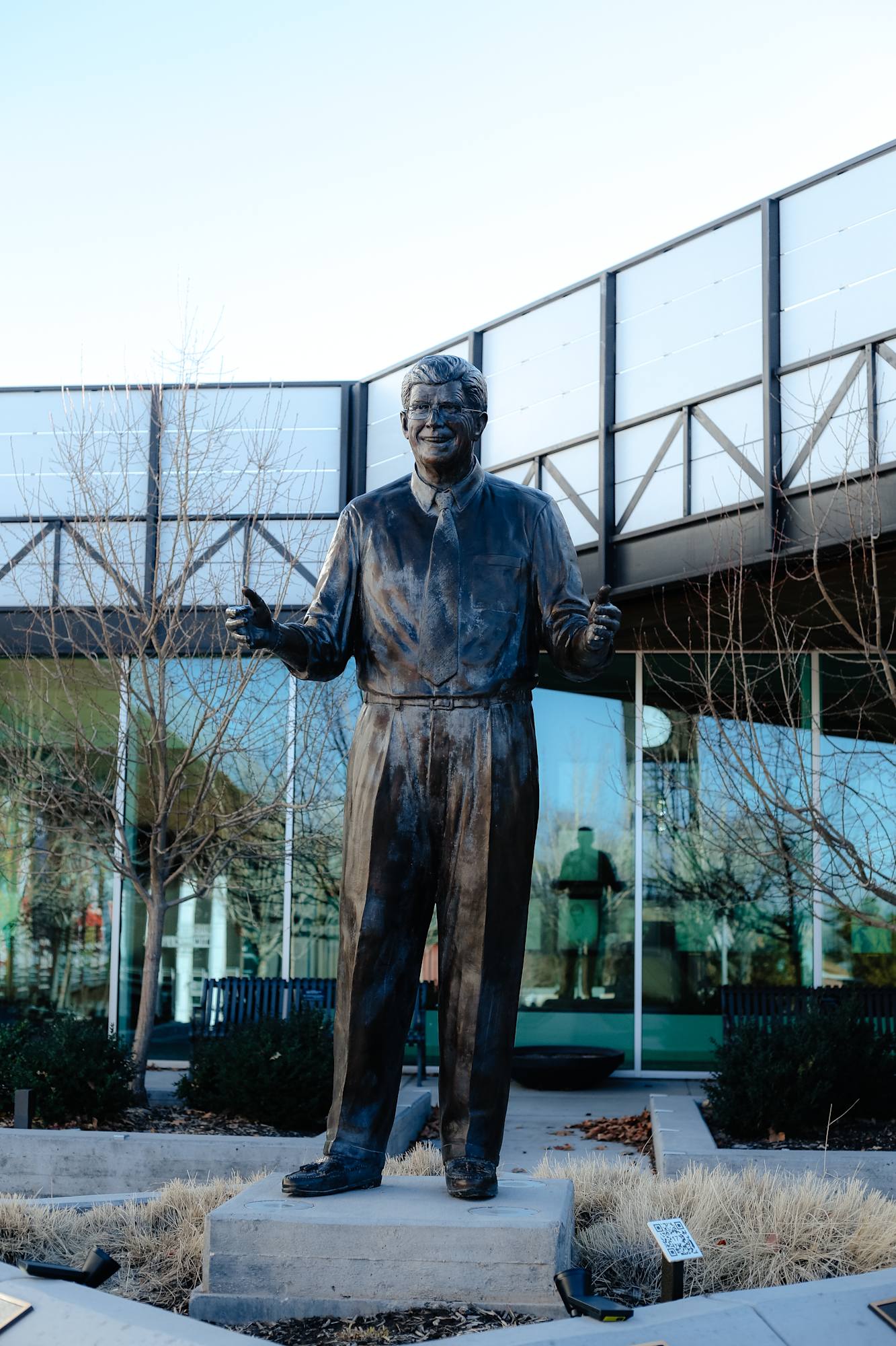 Bronze sculpture of Fred C. Adams (1931-2020), founder of the Utah Shakespearean Festival (now Utah Shakespeare Festival). Gift from John and Terry Grove Family.