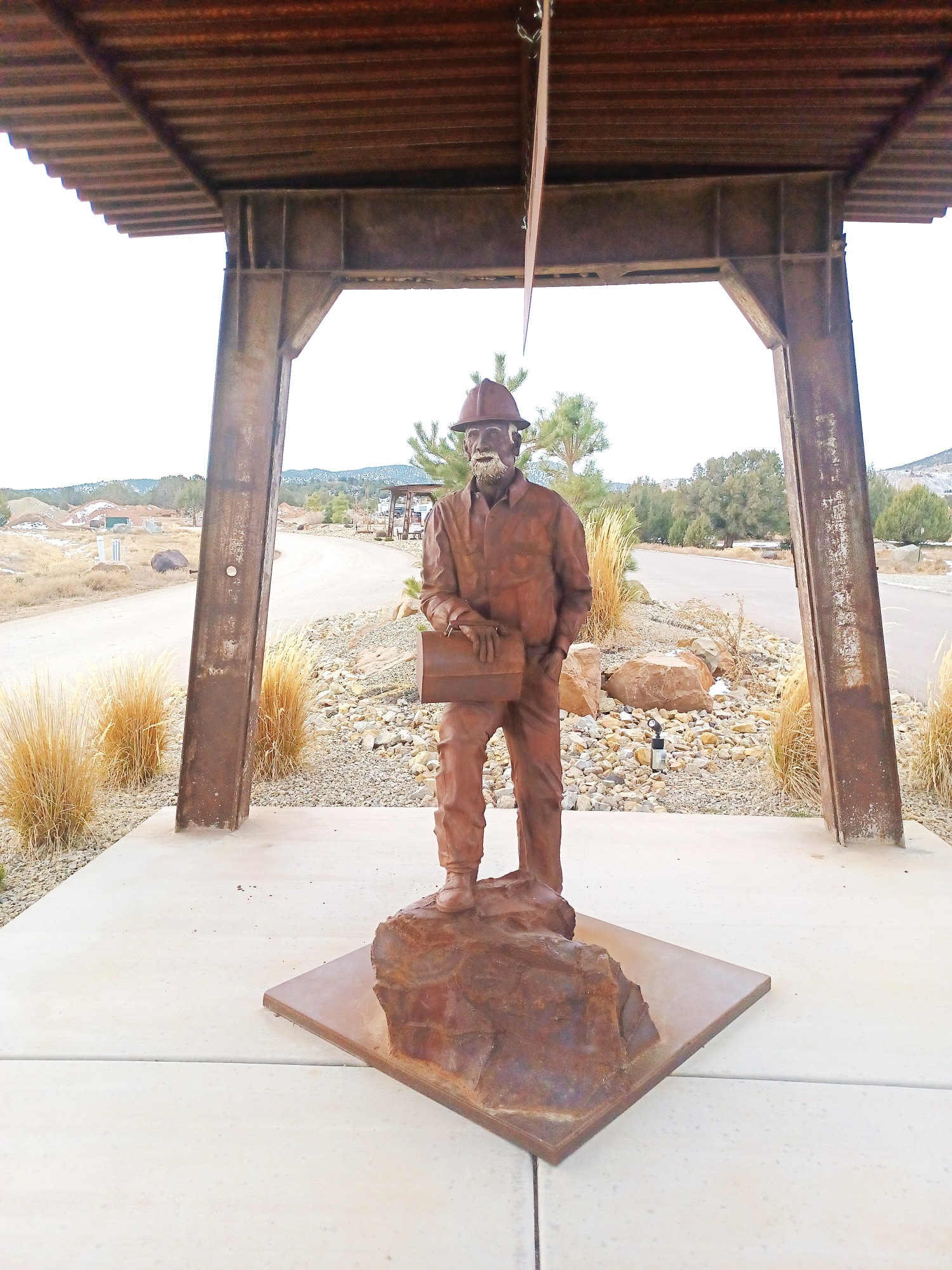 Iron Miner, fabricated metal sculpture, 4th piece in 5 part series at Iron Springs RV Park, 3196 Iron Springs Road, Cedar City, Utah. (https://www.custommade.com/iron-miner/by/jacobdean/).