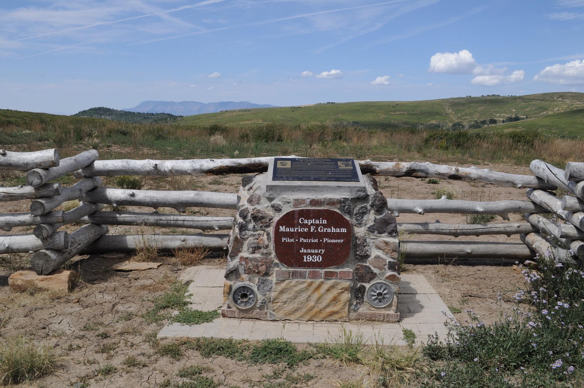 Plaques attached to stone or stone façade monument. Captain Maurice (Maury) Francis Graham was a hero of WWI, credited with saving the lives hundreds of American servicemen of the Lost Battalion when their unit was overrun by German ground forces in a dense fog. He was a recipient of both the Distinguished Flying Cross (DFC) and the French Legion of Honor (LOH), and Maury was considered by many to be the world’s foremost weather‐capable pilot. He pioneered a viable airmail route from Los Angeles to Salt Lake City for Western Air Services, of which he was also a co‐founder; he was at home in the air and on the mail route.