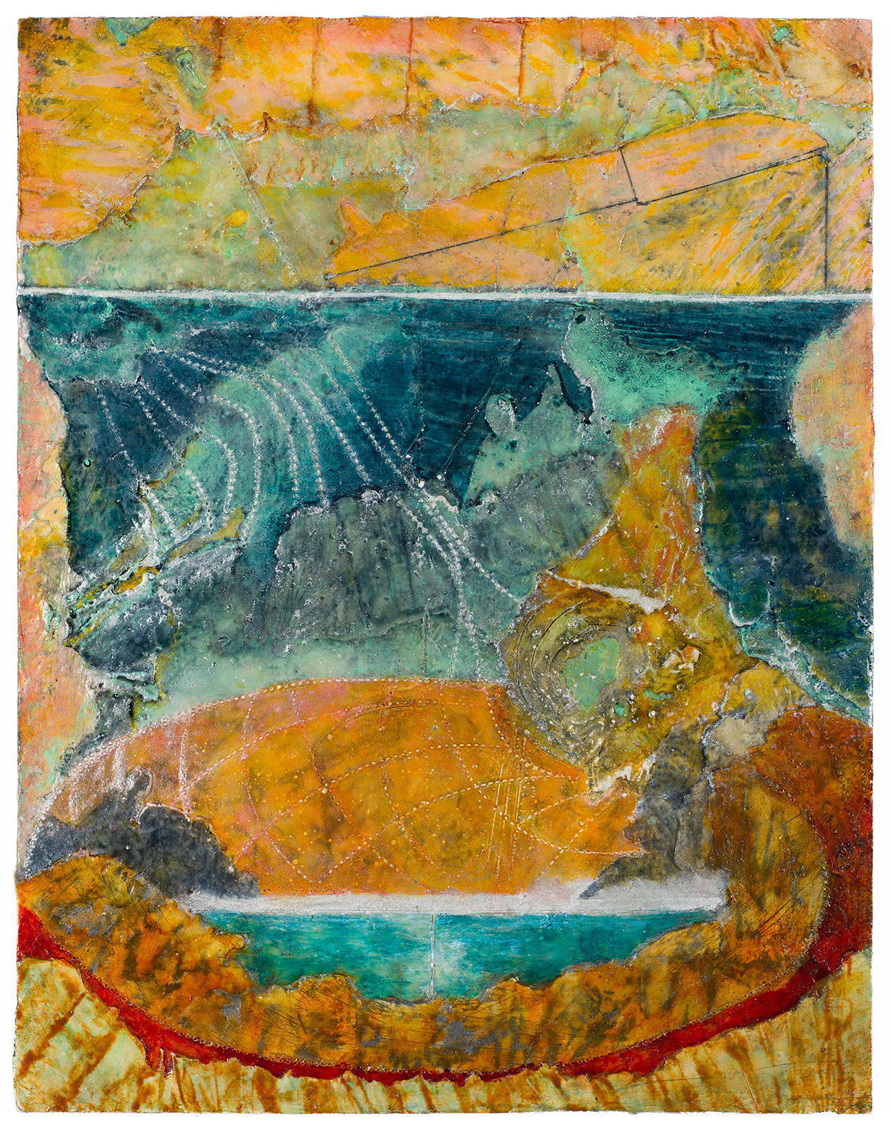 - graphite transfer collage, encaustic and oil on panel 14” x 11”