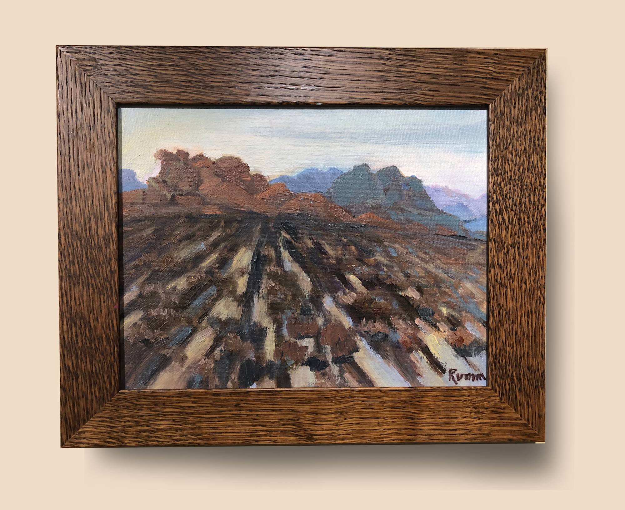 My last stop on the way home from my impromptu "running-away-from-smoke-in-Mariposa" trip, I was a bit burned out on so much painting. Still, I got there early in the morning, early enough to catch these long shadows crossing the land. By the time I finished, the sun was bright and I took a hike. Embarrassed to say, on a short hike I found myself turned around and off the trail, ended up following a wash and x-countrying back to the car.