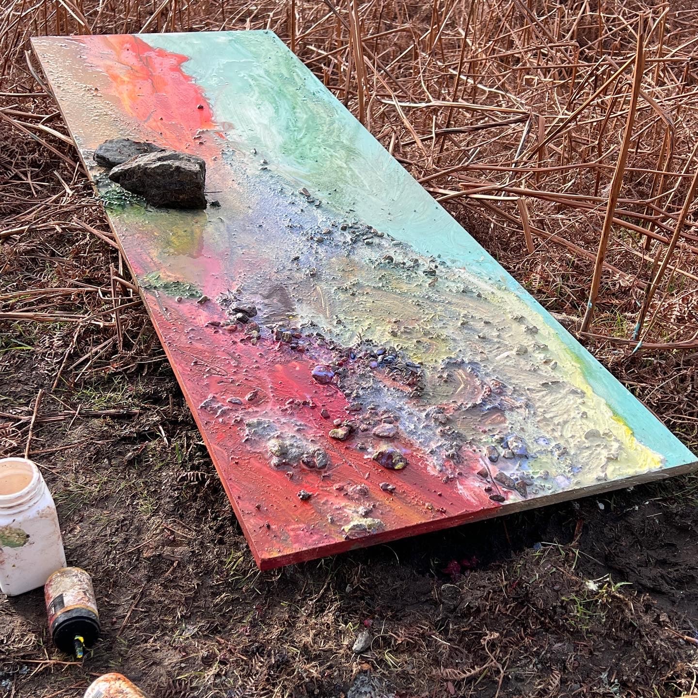 - Acrylic and earths on board