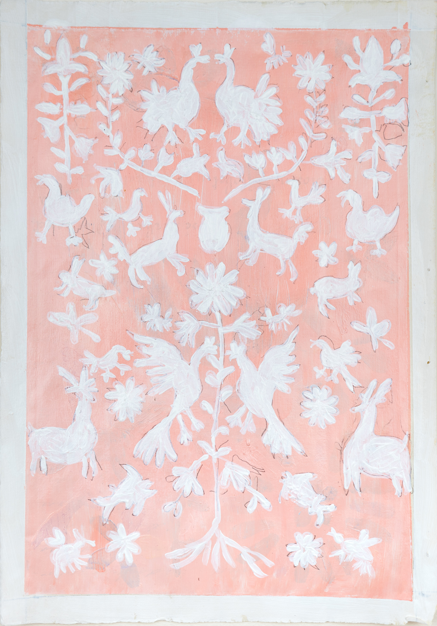 - acrylic gouache and pencil on vintage paper