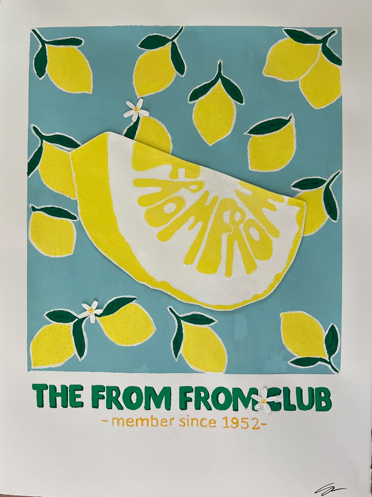 "The From From Club” draws inspiration from vintage fruit labels and playfully pokes fun at a common follow-up question that minorities face after stating a US city or state as their birthplace: "But, where are you from from?”