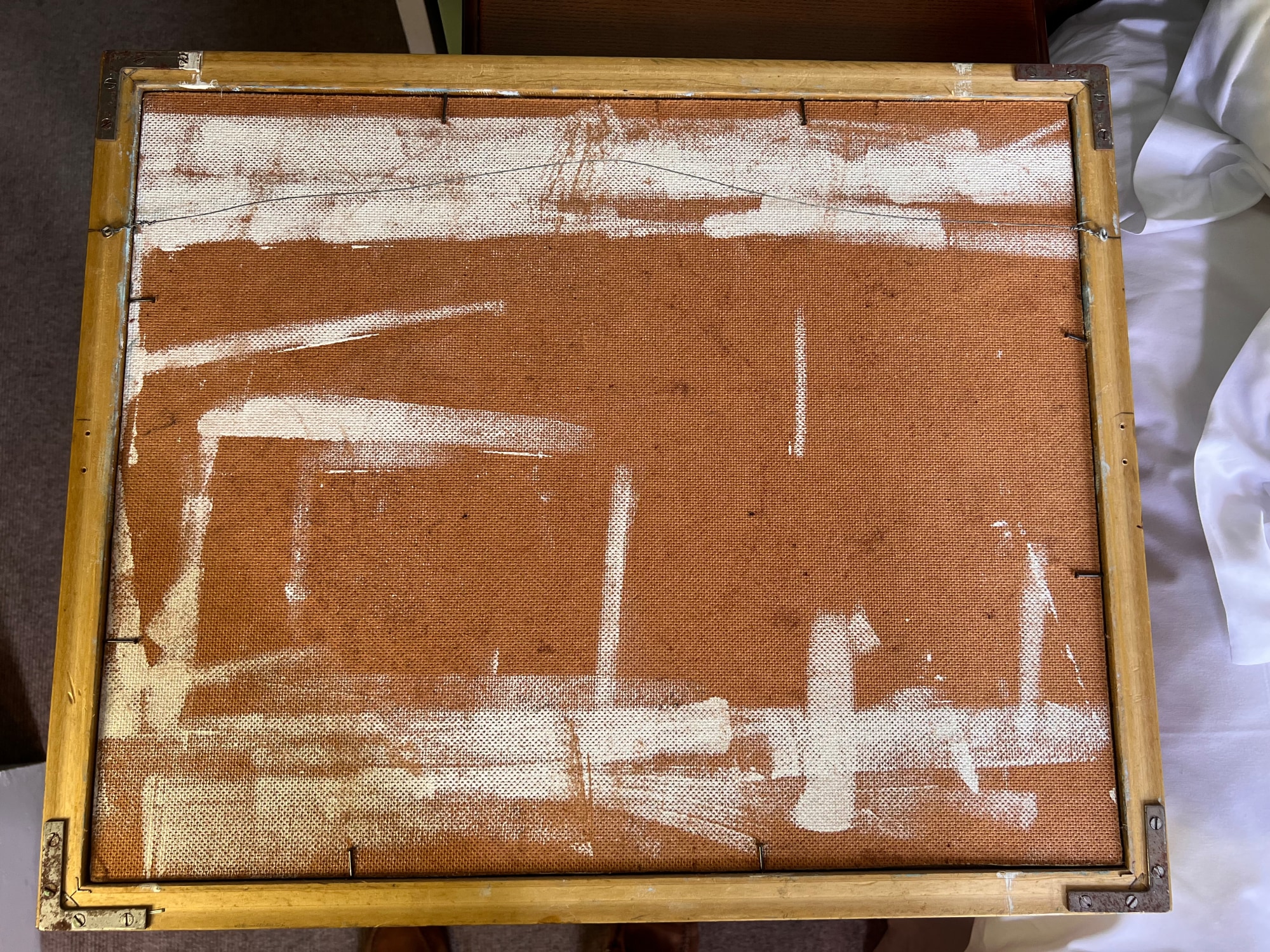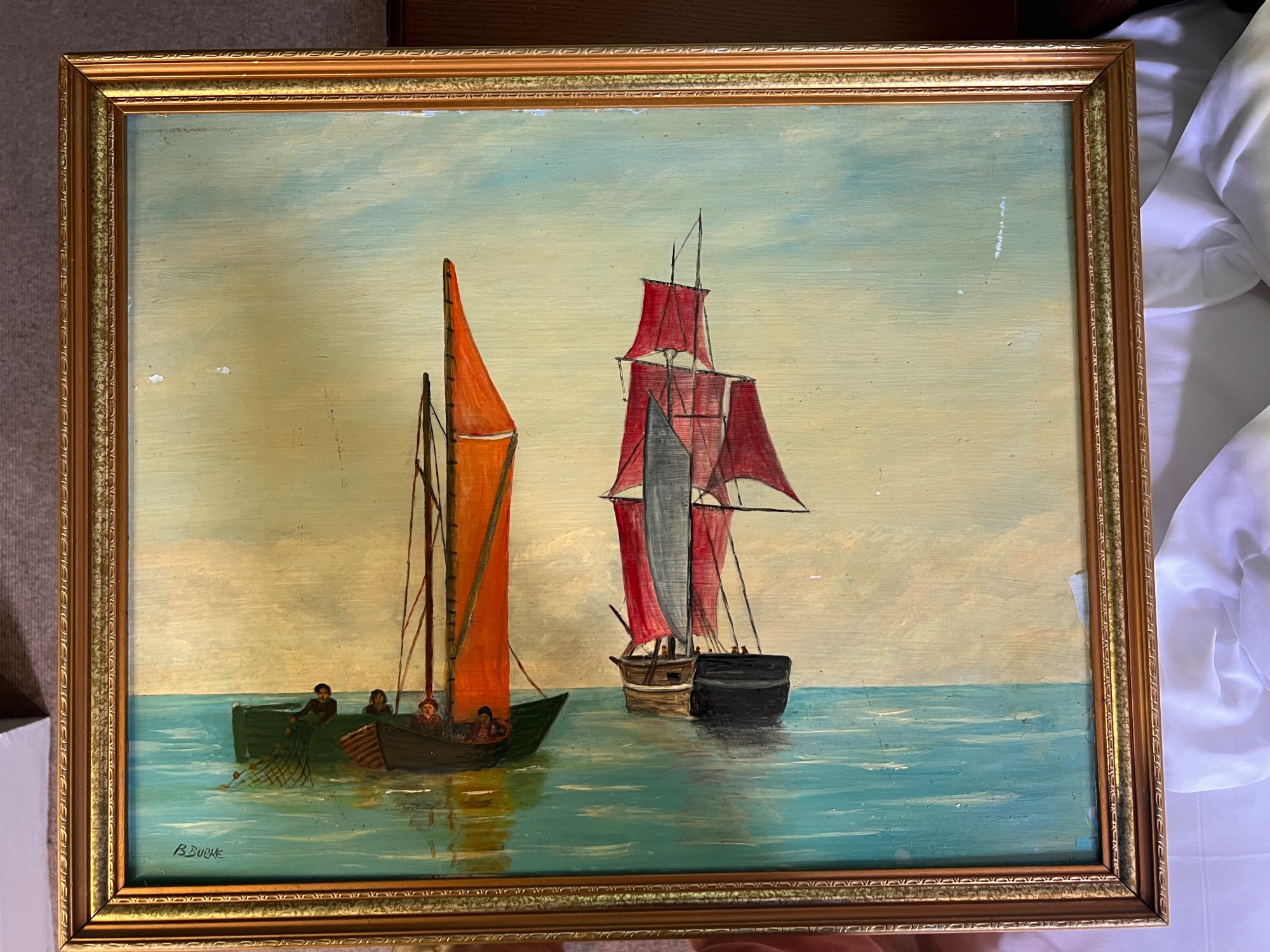 Yes, a very 'naive' oil but I quite like the way the artist displays the stillness of the water and the lack of wind.
