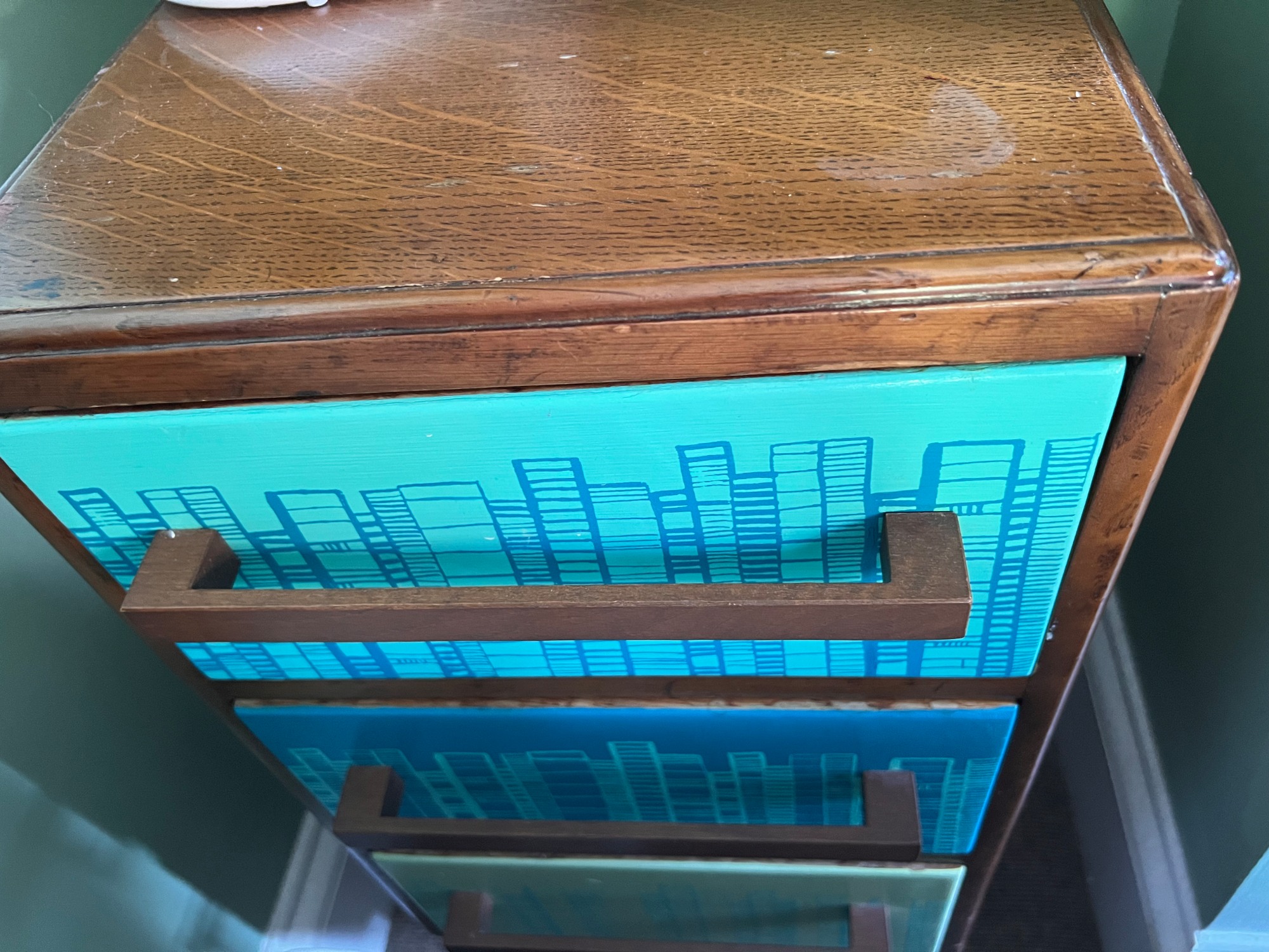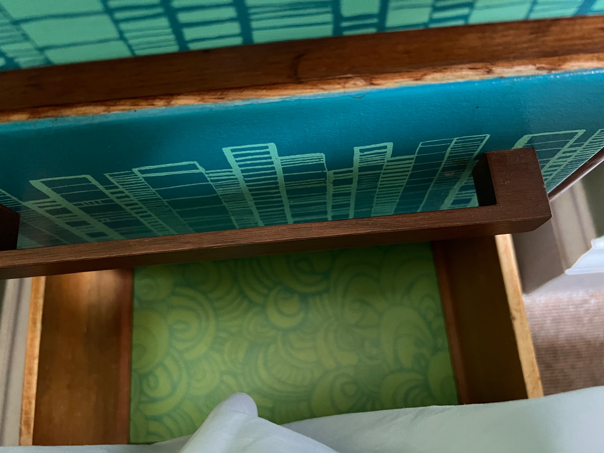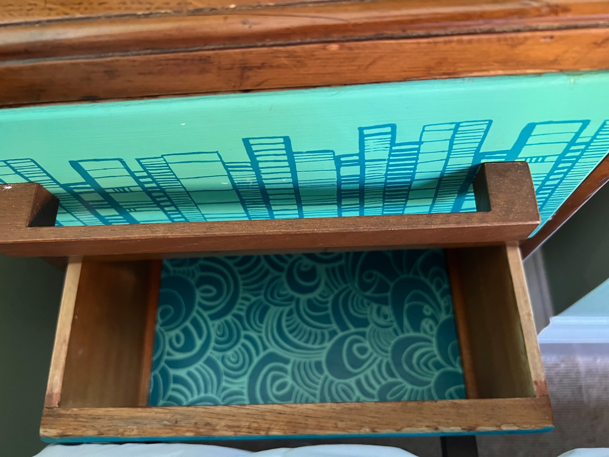 I had quite a few pieces made for the hotel by this local artist Zoe Murphy. These 2 pieces I bought directly from her shop as I thought the bedside tables in this design would lighten the room and reflect on the seaside aspect of Ramsgate. As you can see one of pieces doesn't quite fit in the space as it should but nonetheless by turning it 90 degrees allows the pair of them to be together in the room. See more details below on Zoe Murphy.