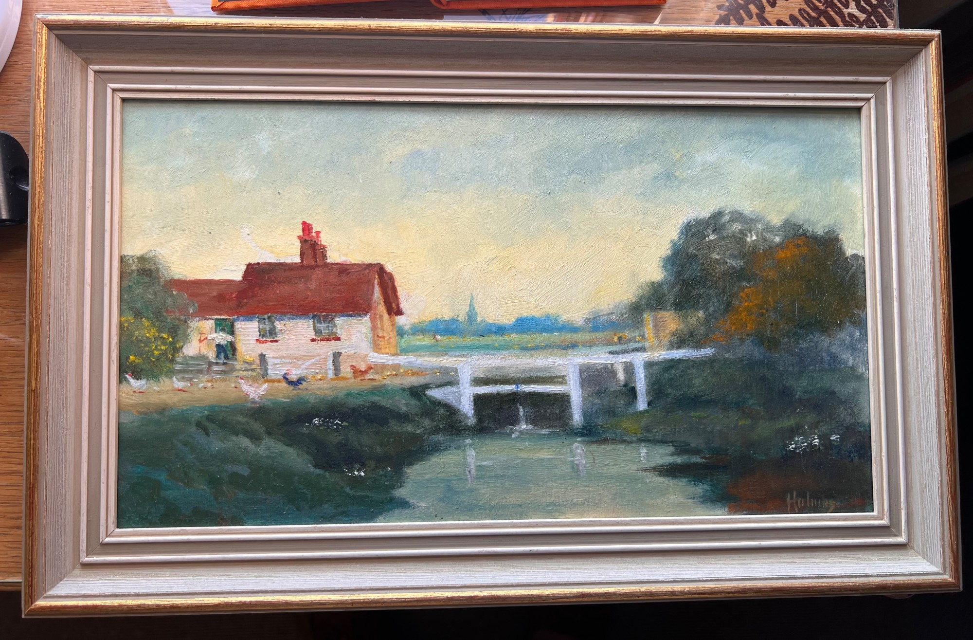 This is so charming. The chickens outside the Lock keeper's cottage. Am assuming it has been painted by the same artist who did the Pub and the Cows. Any further information on the artist and/or the location of the picture would be most welcome.
