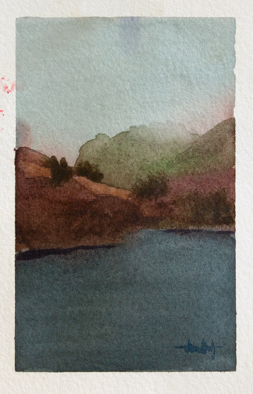 Painting of a spot in the Scottish Highlands known for film location of Hagrid's Hut, near Glen Coe.