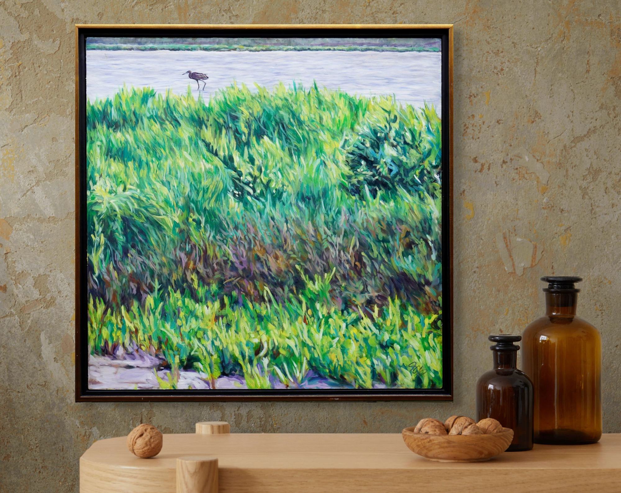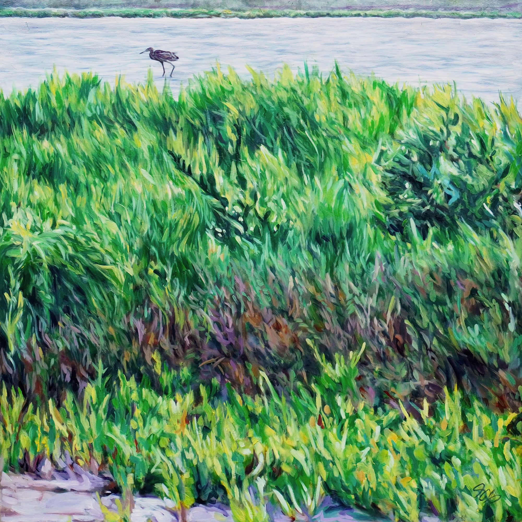 Painted from life on a small island in the Laguna Madre, Island Foliage explores the strength and fragility of plant life adapted to salt, wind, and sun. Through loose, gestural marks and subtle shifts of color, the work conveys resilience and rootedness—an expression of ecological harmony within a challenging environment.