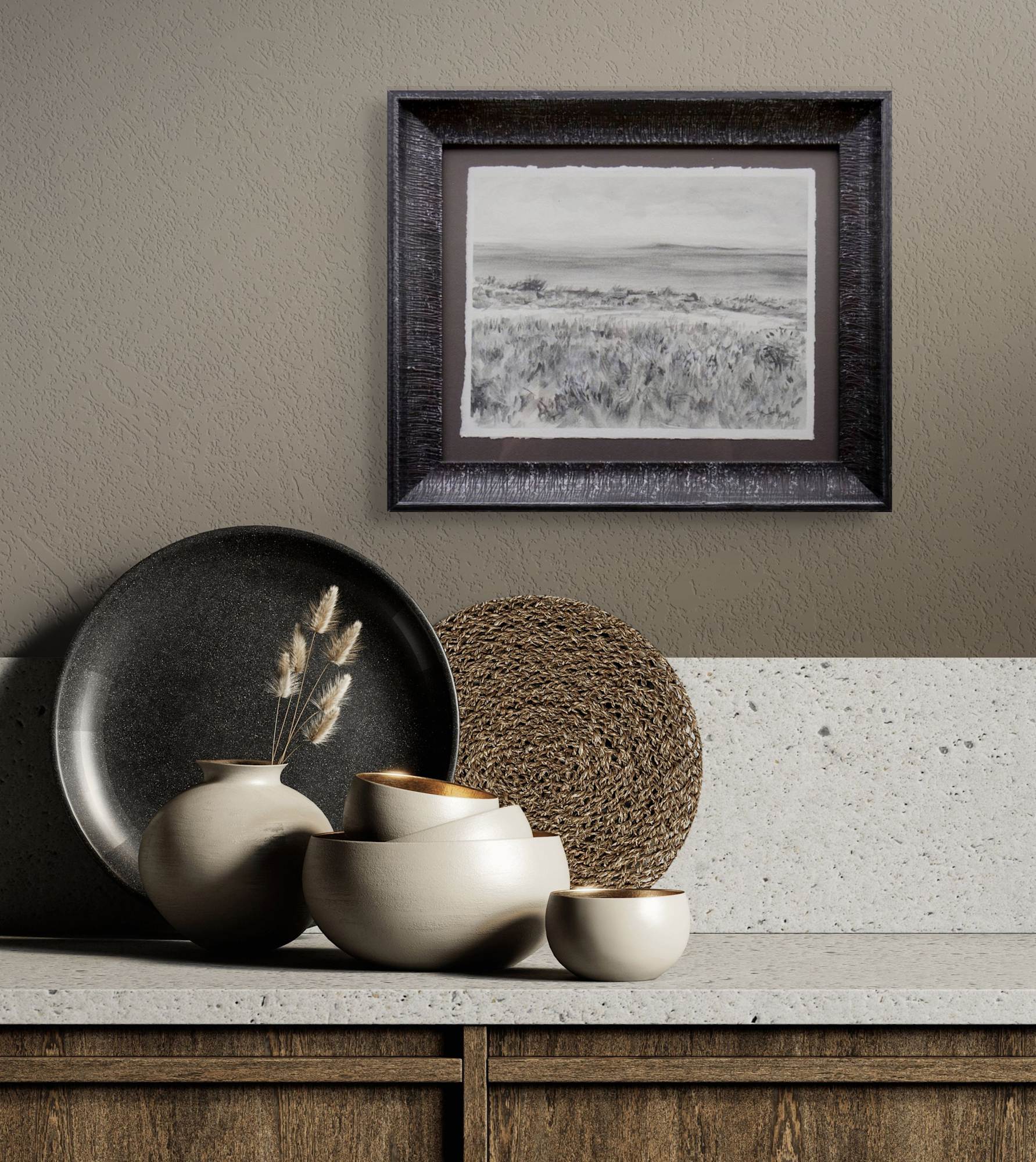 Created during the artist’s residency on a spoil island in the Laguna Madre, Island Meditation II distills the feeling of place into line and form. The graphite gestures echo wind, water, and light, merging field observation with contemplative drawing.