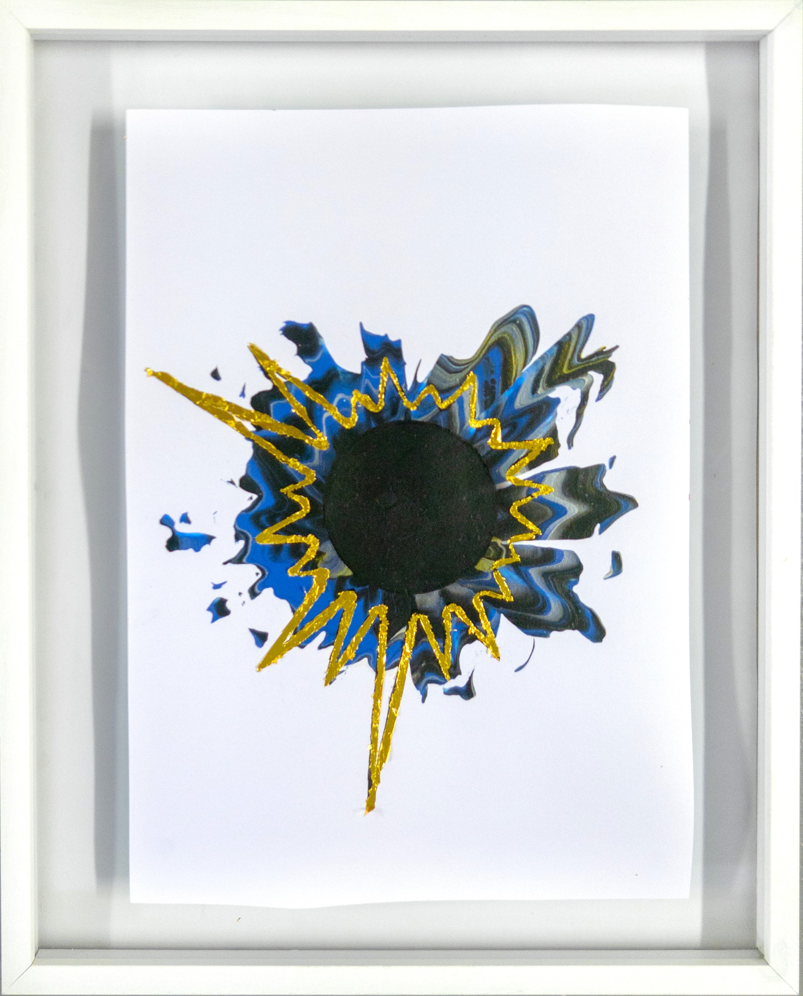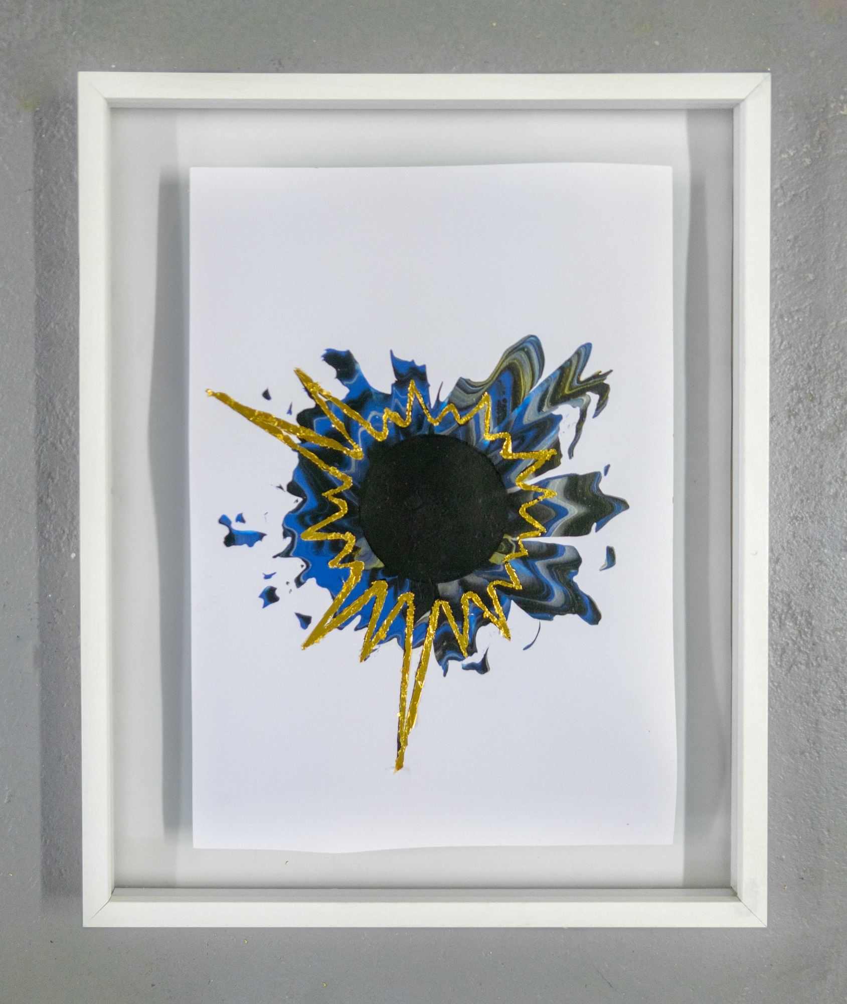 The 'Be The Spark' series is comprised out of 12 original artworks, created with acrylics and metal leaf on paper. As a combination of two themes, the works display a human iris and also resemble the shining stars that surround us every night.