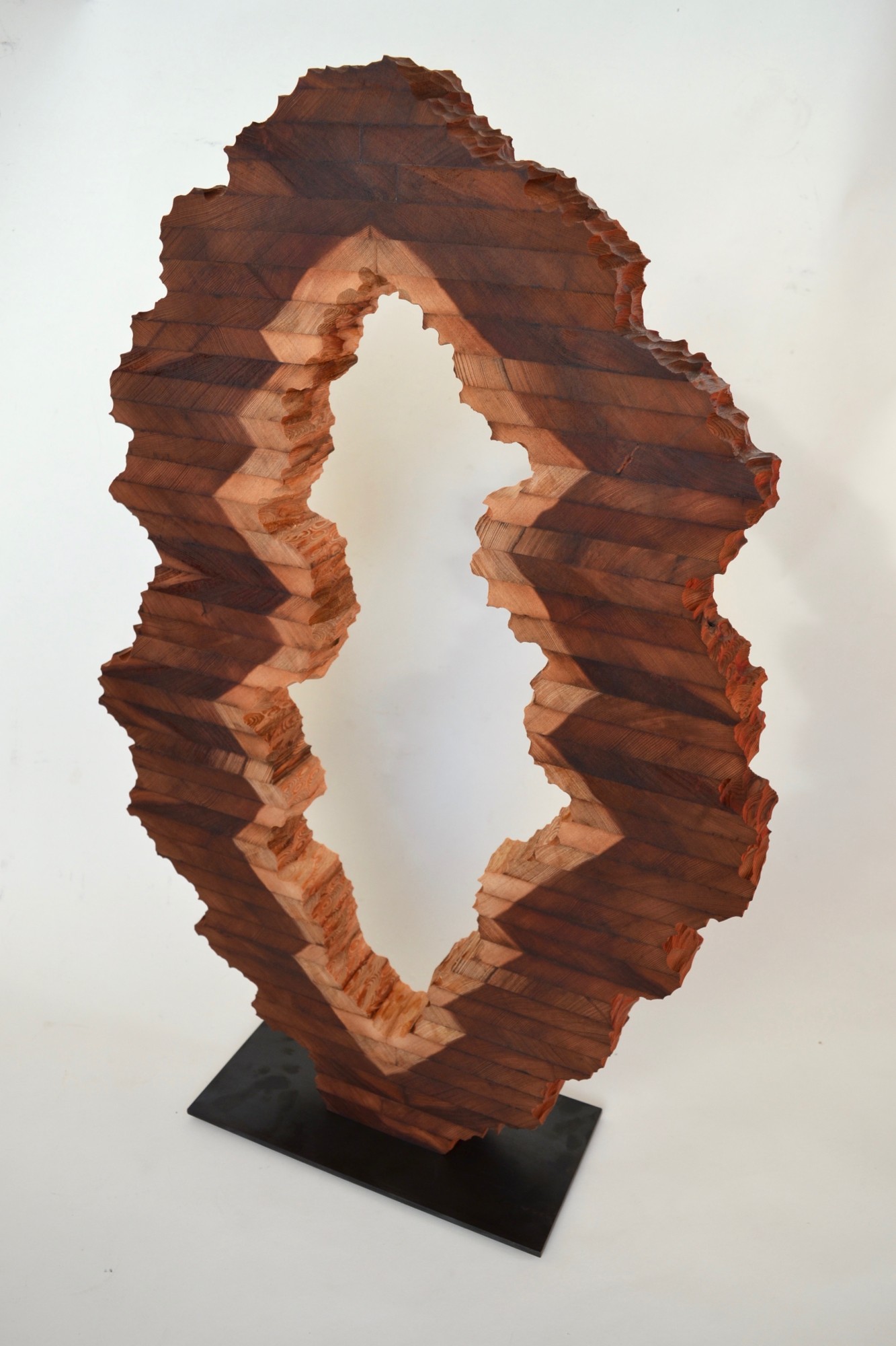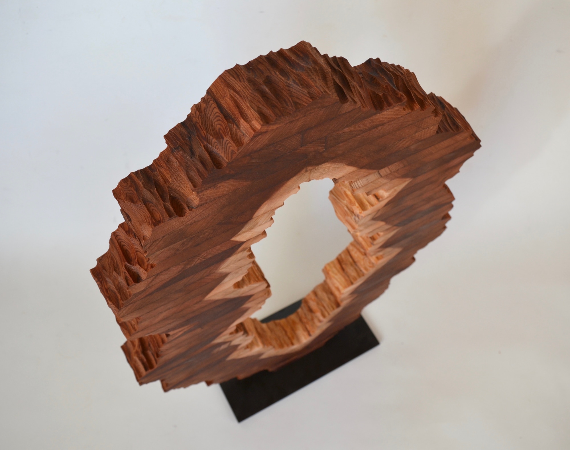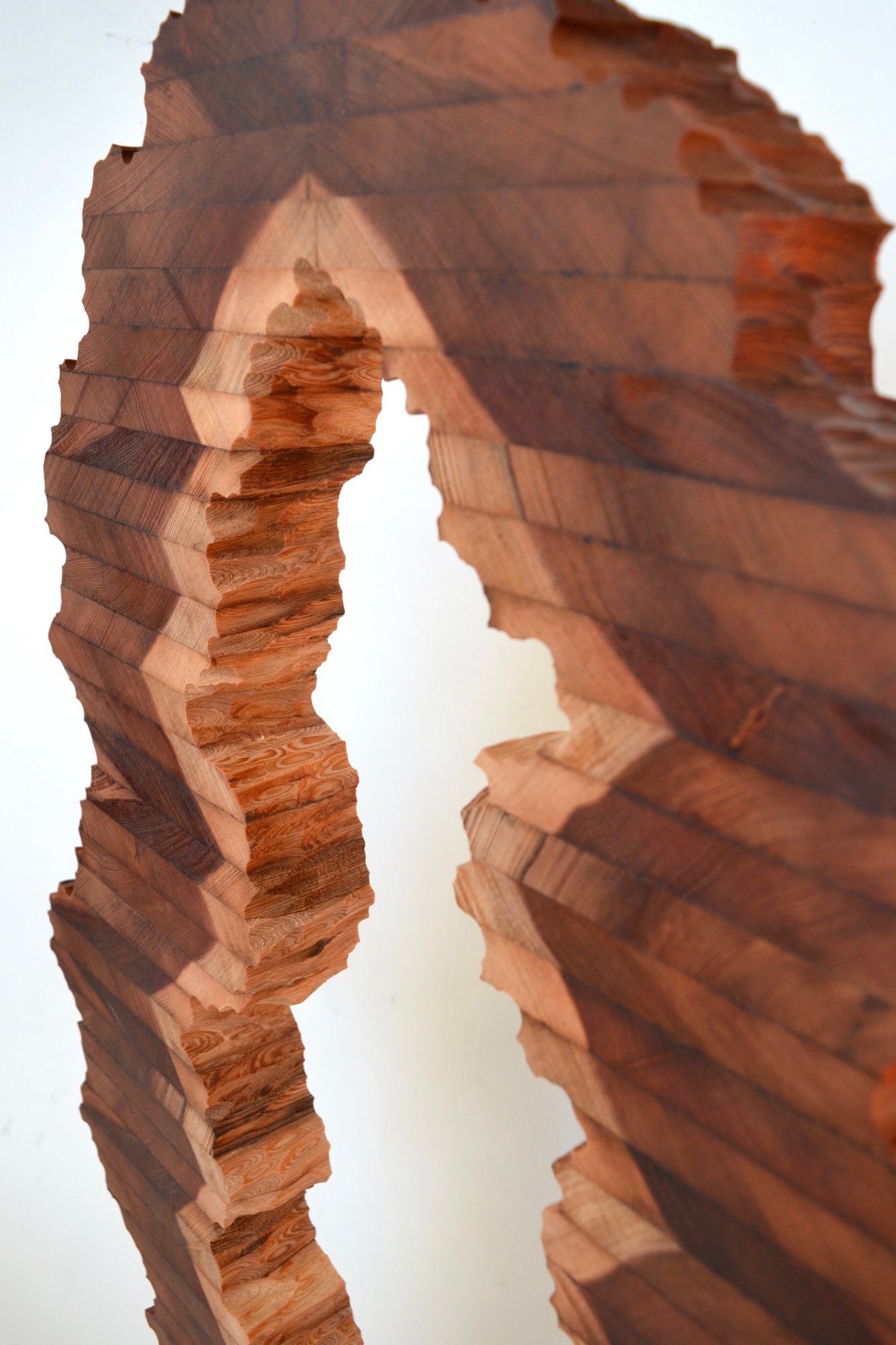 The 8000 Years sculpture is made out of 80 end pieces of reclaimed old-growth redwood. Each piece shows beautiful grain with about 100 growth rings - so the whole sculptures represents about 8000 years of tree growth. This is a very unique sculpture, made from old-growth redwood that contains both, heartwood (dark) and sapwood (light). The piece is characterized by its natural warm wood colors (I never use stains) and beautiful imperfections (tiny nail holes, cracks, natural discolorations, sap crystals, etc.) of the old wood - making it a truly one of a kind wood sculpture.