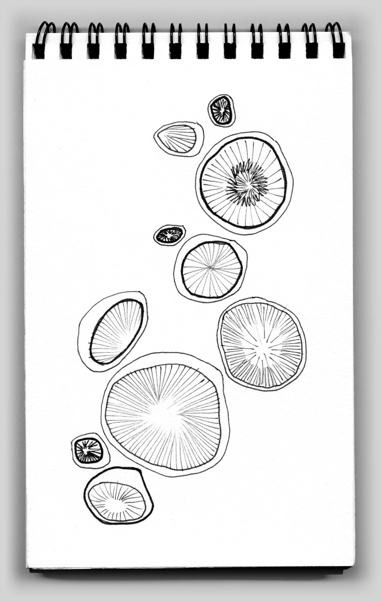 Original sketches are not for sale. Available upon request: Hand-pulled, signed monoprint based on a sketch from the list below 8" x 6" $120