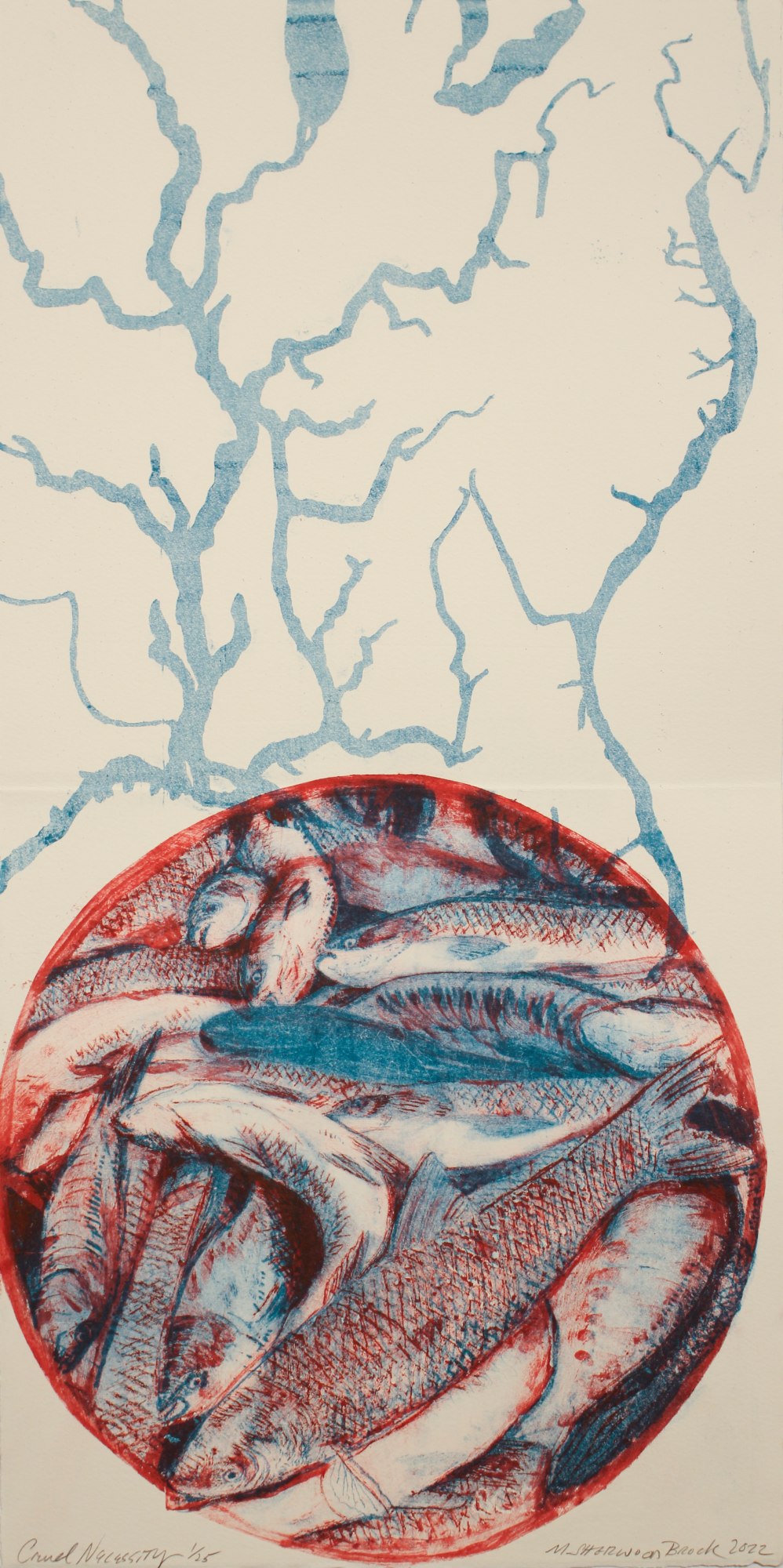 Altered Environments is a portfolio, curated by April Flanders which includes the work of 25 artists from the United States and Canada. Marine bio invaders are species that have expanded beyond their natural range in the aquatic environment. The recognized vectors for these invasions include ballast water, commercial and recreational boating, accidental and deliberate introductions, and rafting, all of which are either a direct result of human activity or exacerbated by it. In this portfolio, these artists address the breadth of the aquatic environment, both salt and freshwater, as a complex and fragile ecosystem, under daily threat from multiple forces.
