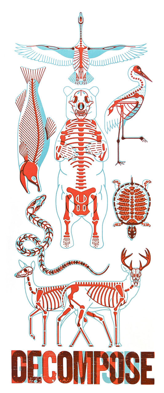 The piece in whole represents the simultaneous harmony of life and death, featuring animals of importance to me and the people I love. The text on the bottom reads “GO OUTSIDE / DECOMPOSE”, referencing the intended life cycle of these animals.