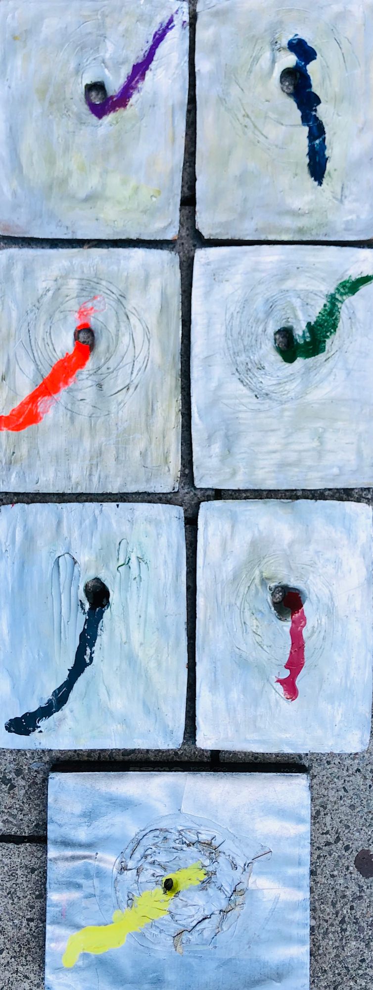 Un gran bel lavoro di Cooperazione tra me e Claudio Asquini. Lui, creatore di questa collezione di terracotta con un foro al centro, ed io con la Fatina di STELLINA che sgorgava i suoi 7 Colori da questi Fori Centrali. Dato che uno di questi esemplari é stato venduto, é stato rimpiazzato da un elenco telefonico di Roma dello stesso colore Grigio Perla.